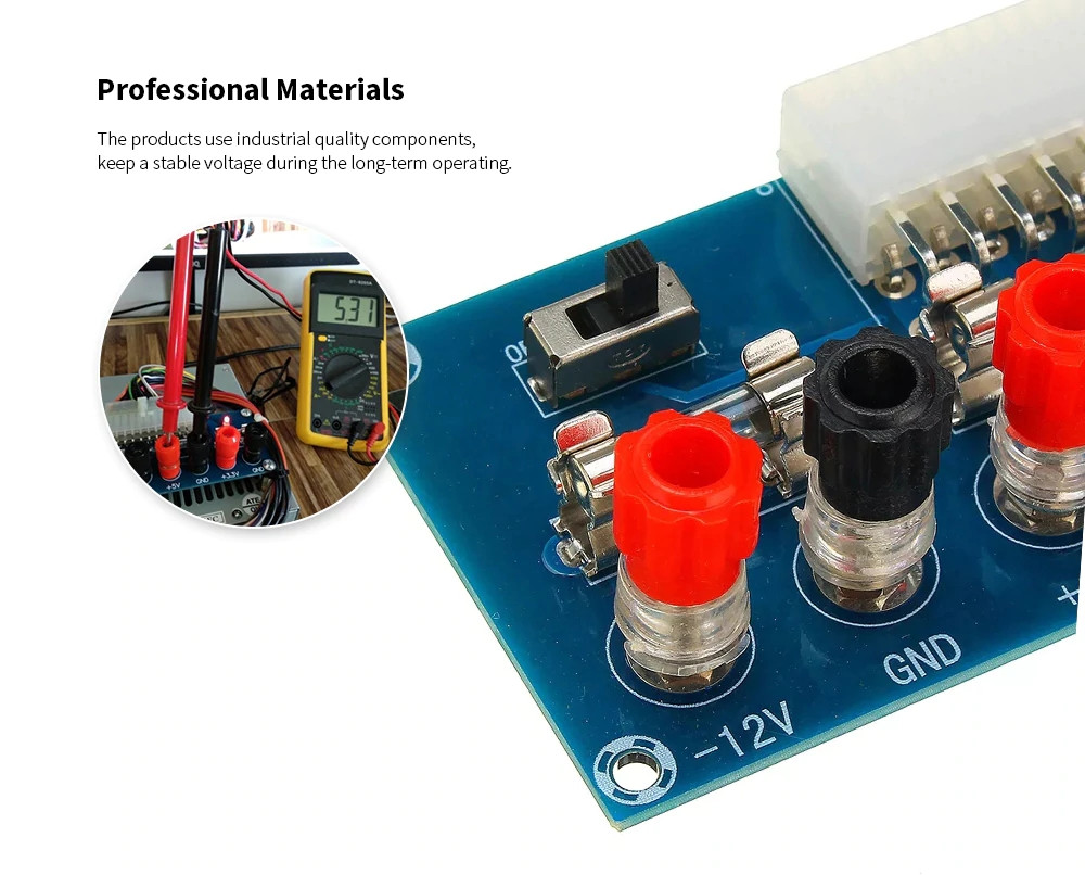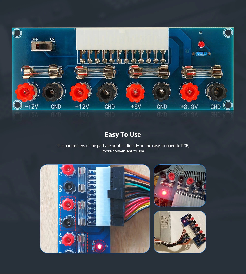 24 Pin: Стандартный 24pin ATX порт. С индикатором питания для легкого чтения и Выключатель питания для включения и выключения, идеально подходит для DIY. Источник питания низкого напряжения Подходит для разработки проектов физических вычислений (встроенных систем).