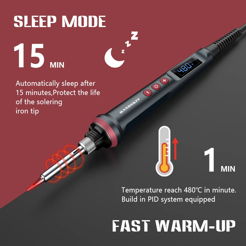 Автоматически засыпает через 15 минут, защищает срок службы наконечника паяльника