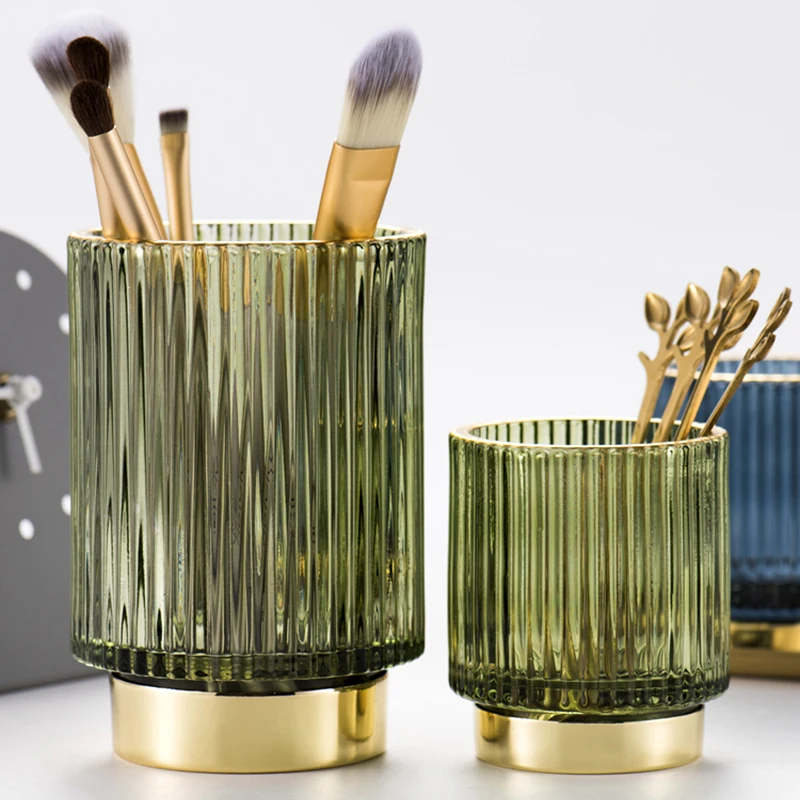 Скандинавский темно-зеленый позолоченный стеклянный держатель для ручек туалетный столик губная помада Кисть для макияжа Органайзер ваза украшения коробка для хранения ювелирных изделий