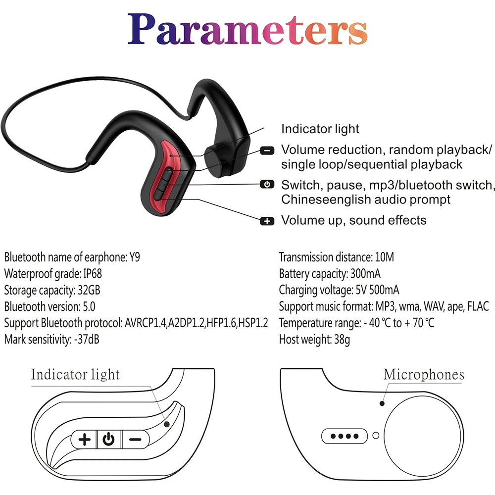 Fashion Wireless Bluetooth 5.0 Earphones Bone Conduction Hifi Music Player IP68 Waterproof MP3 Headphones For Swimming Diving.