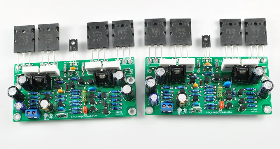 L20SE I предназначен для упрощенной версии усилителя L20. Он обладает отличным контролем, ультра-низким искажением и широким диапазоном поддержки напряжения. Высокая мощность и Высокая выходная нагрузка. Есть 2 пары TOSHIBA A1943 C5200 на канал, с текущей нагрузкой до 20А. Диапазон поддержки напряжения широкий, и две пары на канал и четыре пары высокомощных трубок могут быть установлены произвольно. Стандартный комплект состоит из 2 пар высокомощных трубок на канал. Мощность 200W8R, 350W4R, DC +-65V Производительность параметров: Диапазон питания: DC + -15 в DC-DC + -65 в DC. Рекомендуемое напряжение постоянного тока составляет +-40 В, что идеально подходит для домашнего использования. Рекомендуется использовать двойной трансформатор 15 В до 40 в 200 ва.