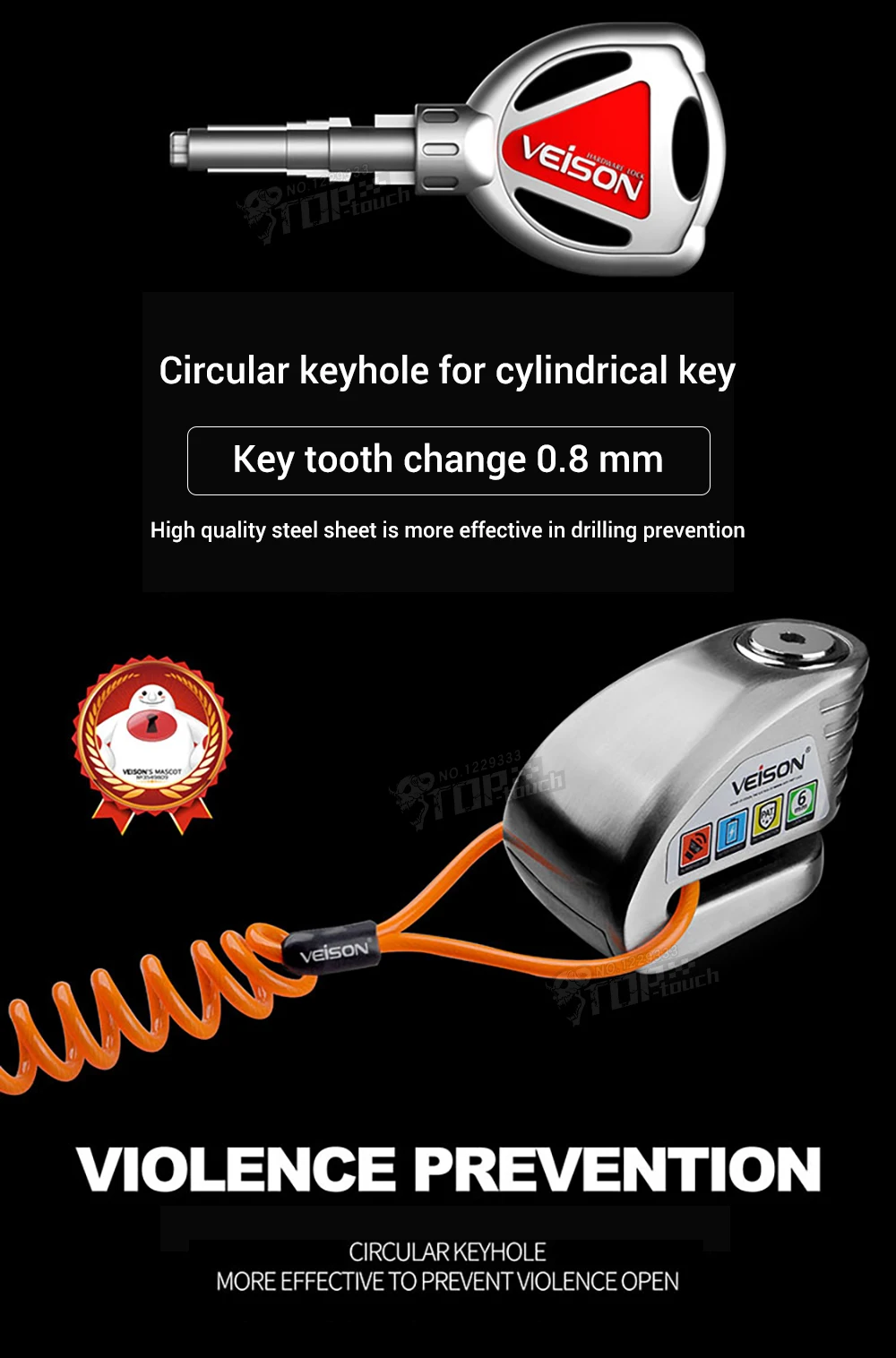 Замок оснащен твердосплавным штифтом 6 мм, ультра-высокой прочностью, морозостойким пульверизатором, ключом максимальной безопасности и бочкой.