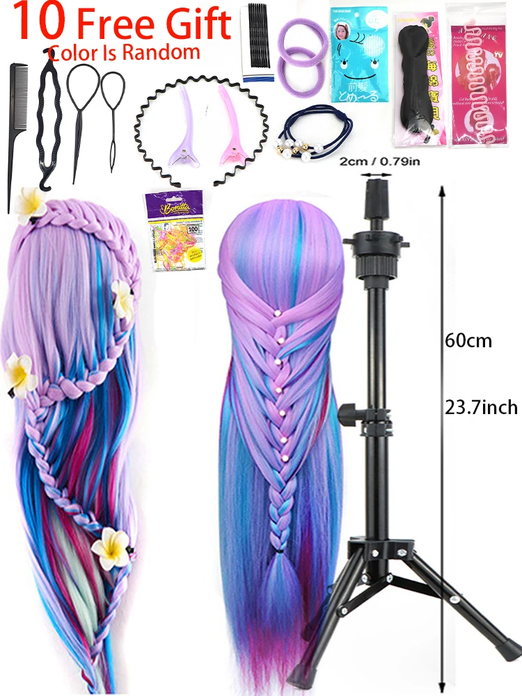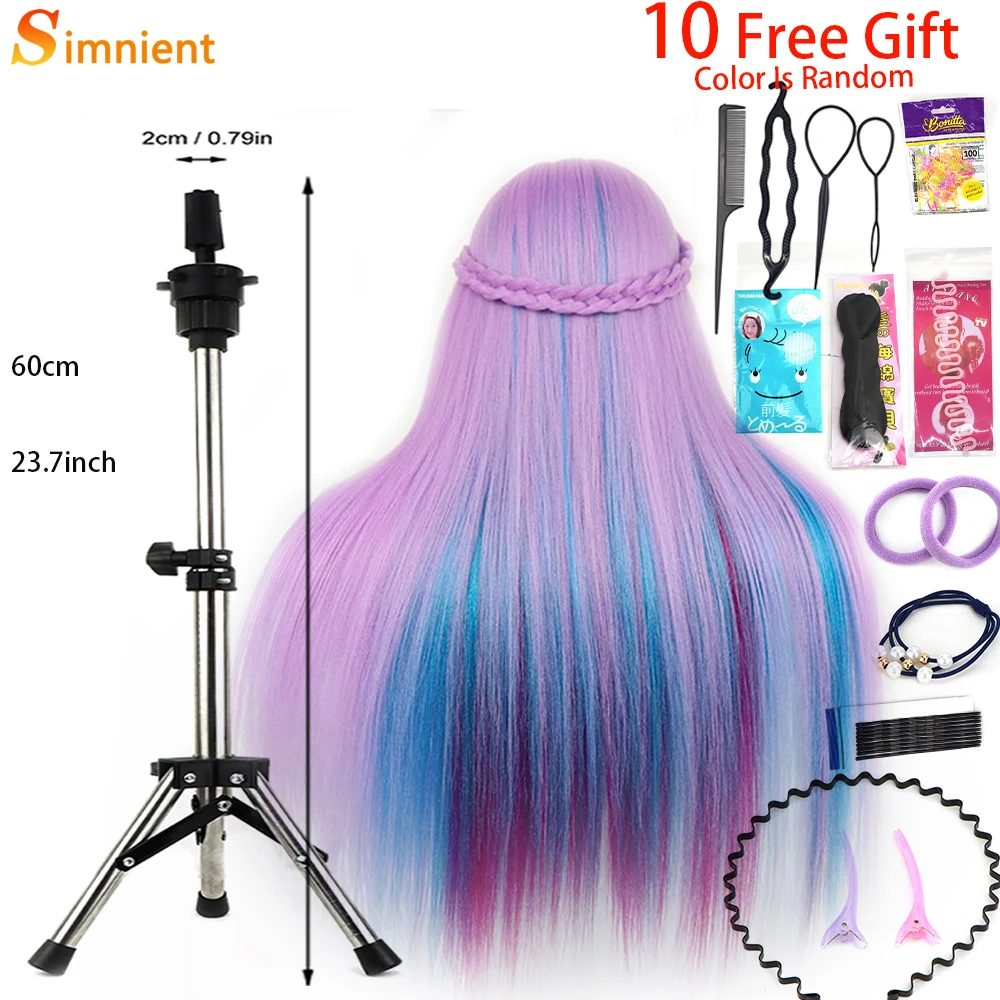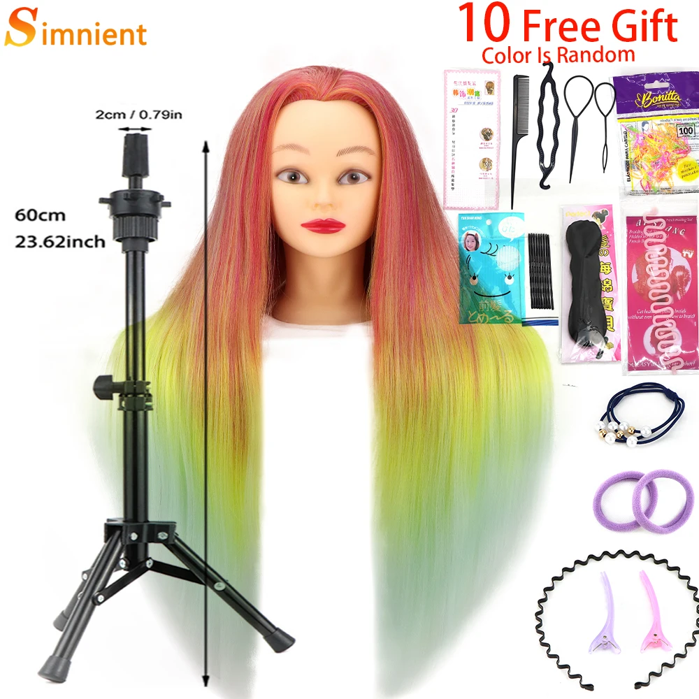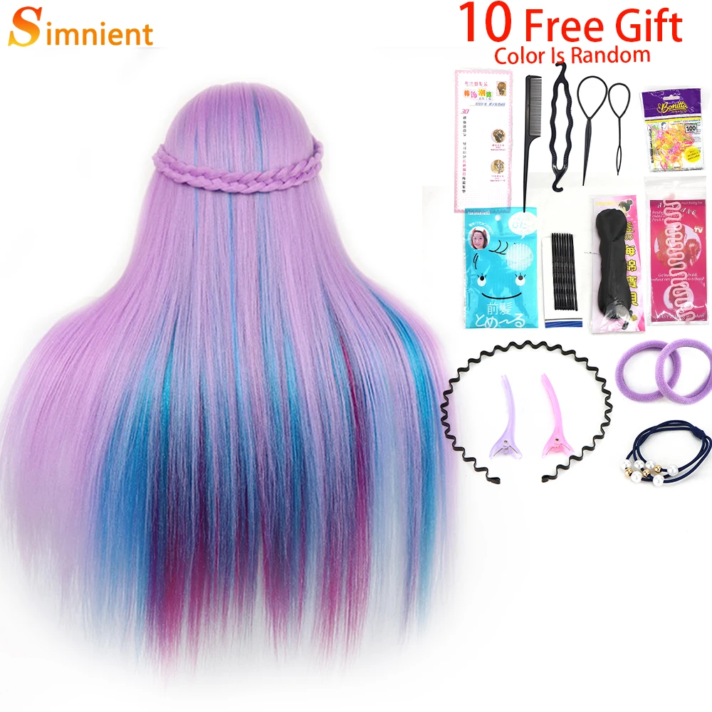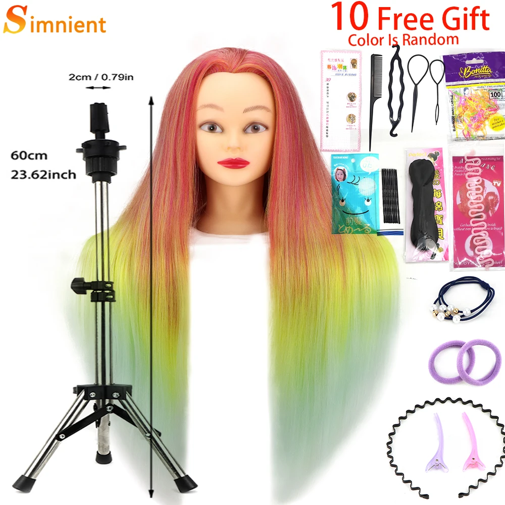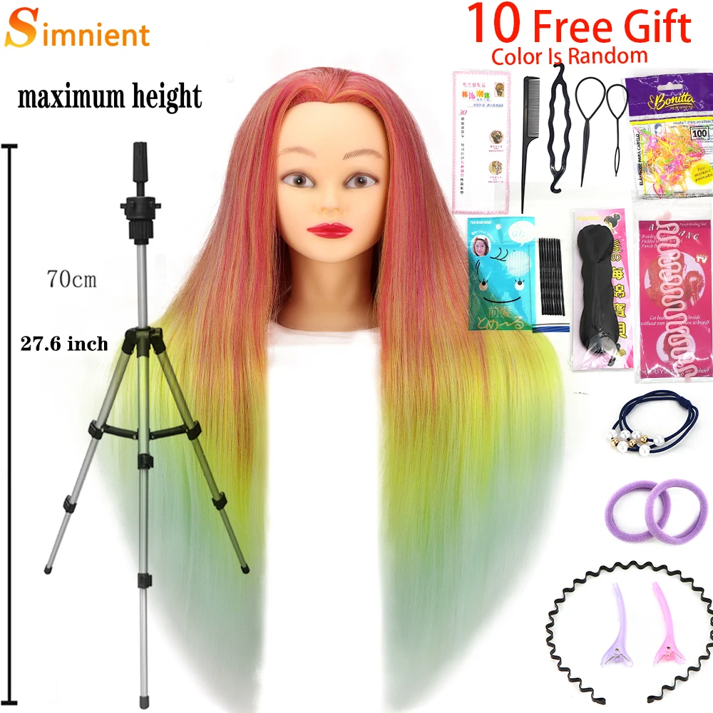 Simnient 29 дюймов цветные синтетические волосы голова манекена для причесок Парикмахерская учебная голова манекен кукольный зажим аксессуары