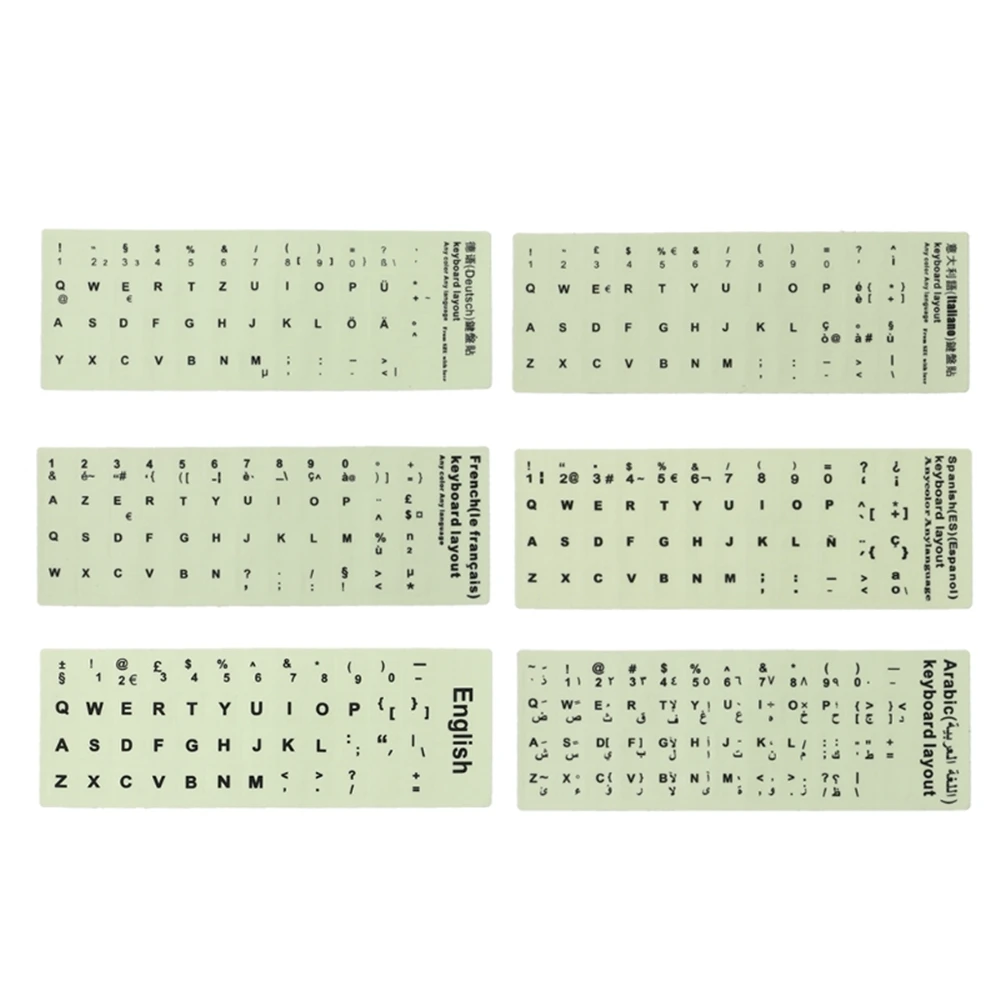 Наклейка на клавиатуру на иврит, арабский, русский, черный, английский, итальянский, немецкий, испанский, Wubi, тибетский, французский, корейский, светящаяся наклейка на клавиатуру