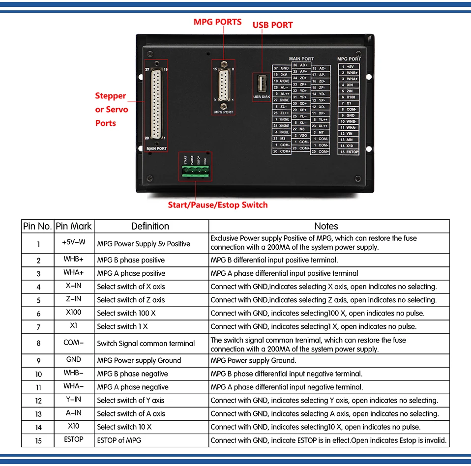 4) 3-4 оси импульсного направления использует дифференциальный выход, максимальная интерполяция импульсной выходной частоты 500 кГц;