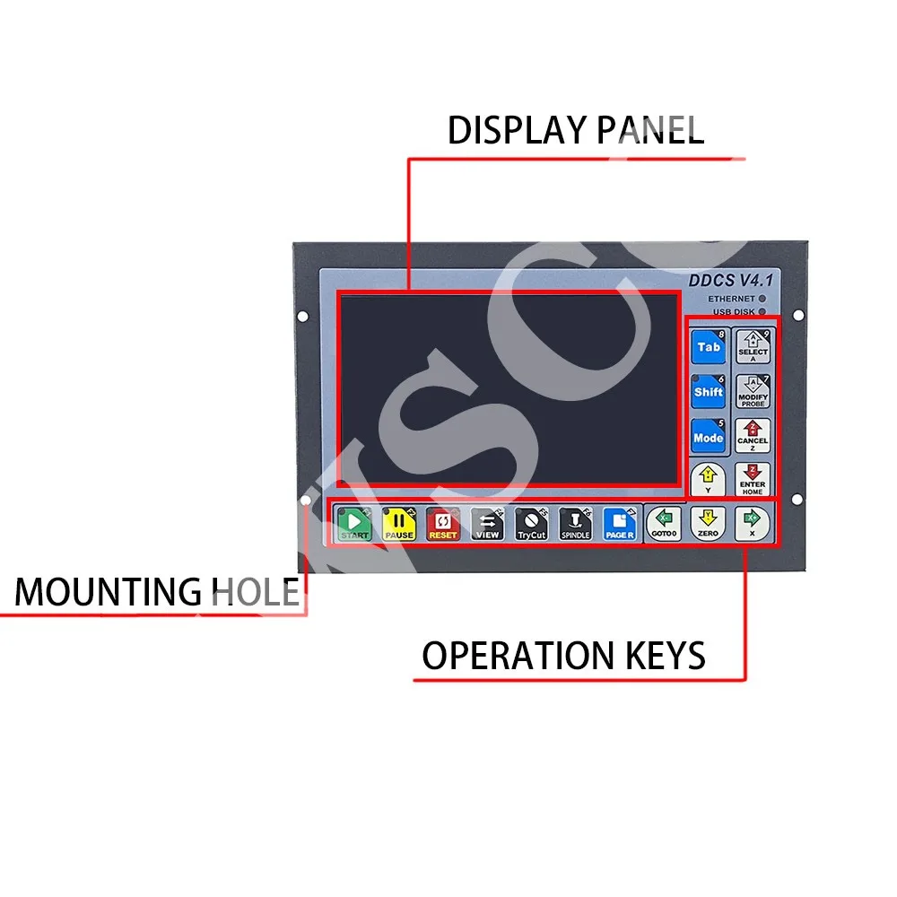 DDCSV3.1 система числового управления использует систему ARM + FPGA design framework. ARM контролирует интерфейс человека-компьютера и анализ кода, а FPGA предоставляет базовые Алгоритмы и создает Пульс управления. Это гарантирует надежное управление и простоту в эксплуатации. Внутренняя операционная система основана на Linux. Структура панели CR8-500 очень рациональна для экономии места. Все операции контролируются только 17 ключами и поддерживается полный набор кодов G.