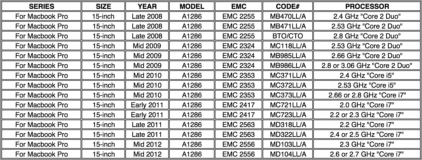 Laptop Model: For MacBook Pro 15" A1286