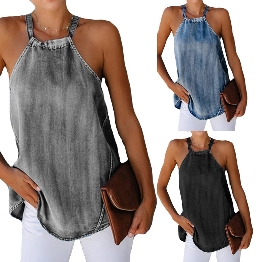 Women fashion halter denim vest top --- The skin-friendly soft and comfortable fabric allows the skin to breathe freely; so cool and stylish,
