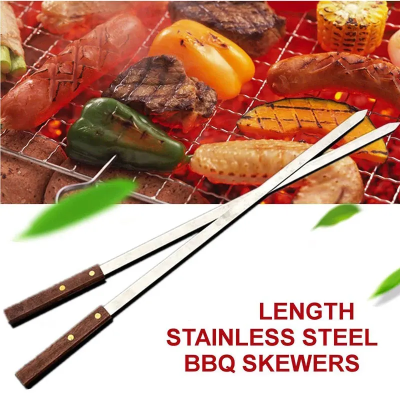 Тип: шашлык для барбекю Материал: 304 пищевая нержавеющая сталь + деревянная ручка Приблизительный размер: длина-60 см, ширина-1 см Вес: 140 г/шт. Посылка включает в себя: 5 шашлыков для барбекю Особенности: -- 0,55 дюйма широким лезвием, ложки с длинной ручкой, дял шашлыка набор. -- Качественная нержавеющая сталь. -Острые концы гарантируют простоту использования со всеми мясом и овощами. -- Деревянные ручки, чтобы ваши руки были прохладными и обеспечивали безопасное сцепление. -- Бразильские большие шашлыки для барбекю.