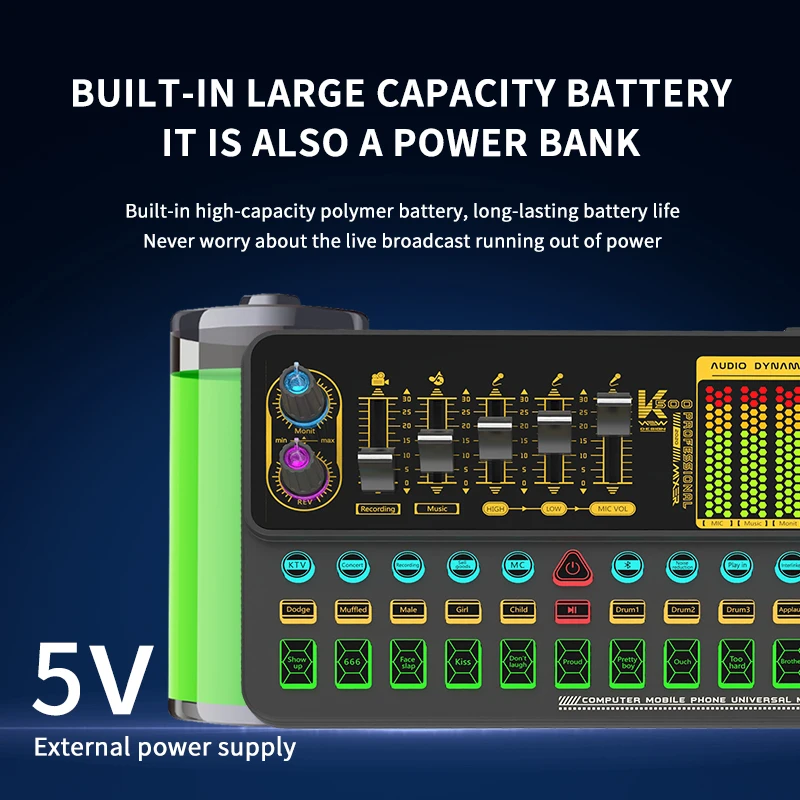 Цифровой Миксер для микрофона 12Звуковые аудио эффекты интерфейс звуковая карта перезаряжаемый подкастер для телефона компьютера ПК Vlog Tiktok окружающий светильник