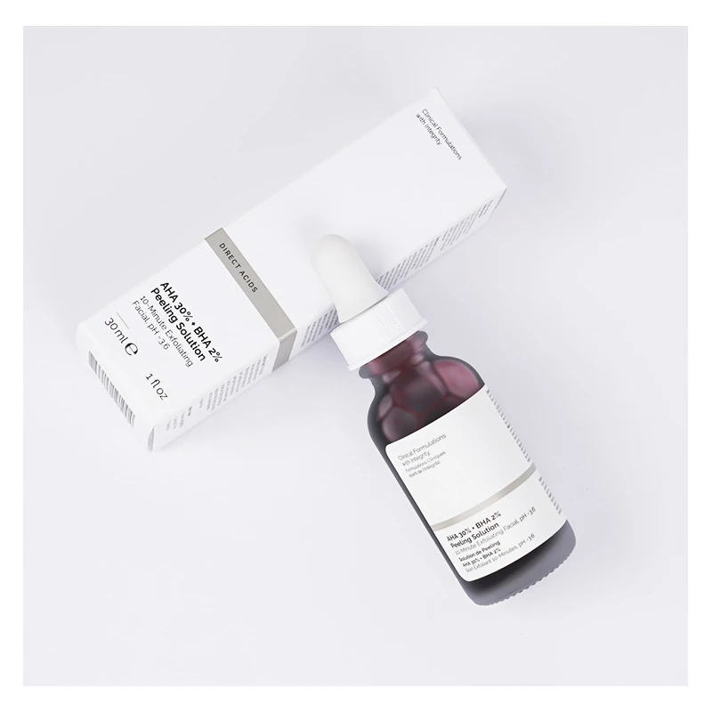 AHA 30% + BHA 2% пилинг раствор на водной основе отшелушивающая маска с альфа-и бета-гидрокси-кислотами. Это лечение отшелушивает на нескольких уровнях кожи для борьбы с акне и восстановления ровного, сияющего тона. Он также разглаживает текстуру кожи и уменьшает внешний вид тонких линий при регулярном использовании. Гликолевые, молочные, тартарные и лимонные кислоты: альфа-гидрокси-кислоты, которые отшелушивают верхние слои кожи для более яркого, более сияющего вида нанесите небольшое количество на чистую, сухую кожу. Оставьте маску не более 10 минут. Тщательно промойте краску теплой водой.