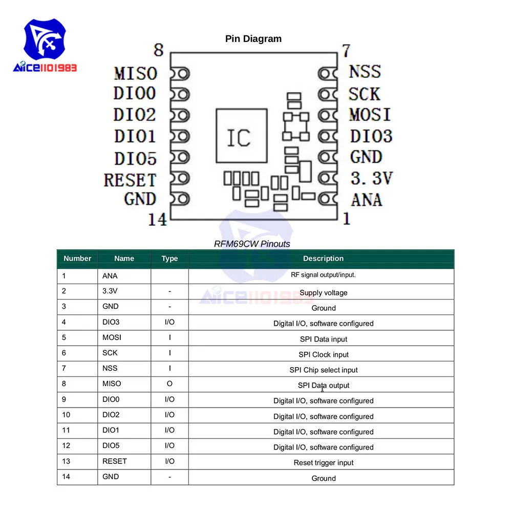 RFM69W-это высокоинтегрированный радиочастотный приемопередатчик, способный работать в широком частотном диапазоне, включая безлицензионные Диапазоны частот ISM (Industry Scientific and Medical) 433, 868 и 915 МГц. Его высокоинтегрированная архитектура позволяет использовать минимум внешних компонентов, сохраняя при этом максимальную гибкость дизайна. Все основные параметры радиочастотной связи программируются, и большинство из них можно динамически устанавливать. RFM69W предлагает уникальное преимущество программируемых режимов узкополосной и широкополосной связи без необходимости модификации внешних компонентов. RFM69W оптимизирован для низкого энергопотребления, предлагая при этом высокую выходную мощность RF и канальную работу.