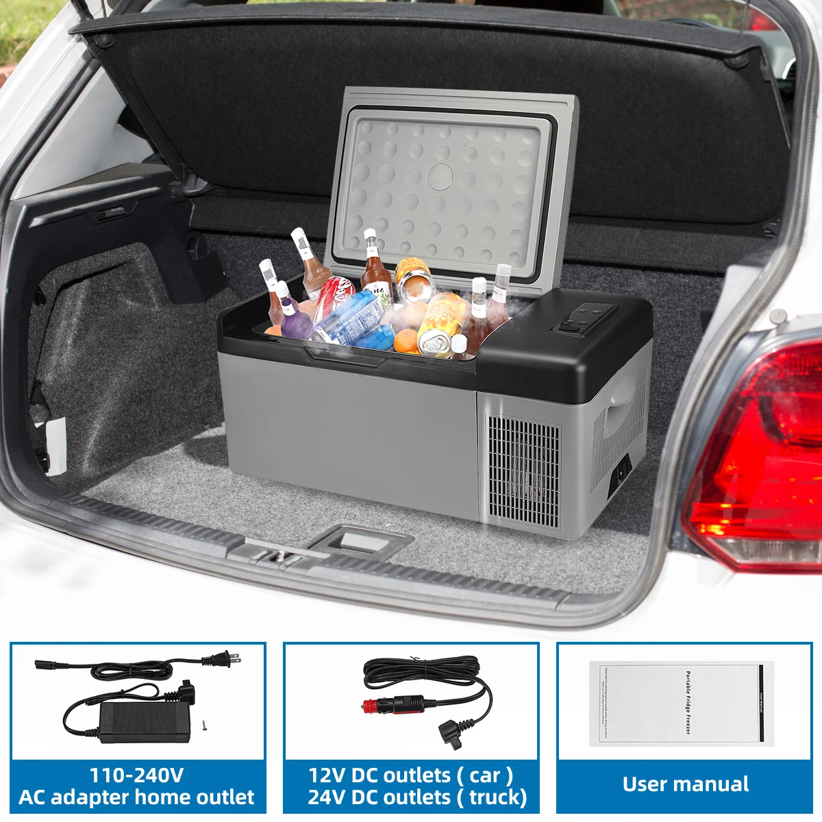 -Быстрое Охлаждение: с помощью мощного компрессора, портативный холодильник работает с функцией быстрого замораживания, при температуре окружающей среды 25 °C, холодильной камеры может быть остужено от 25 °C до 0 °C в 25 минут (бутылка воды занимает 4,5 часов замерзнуть)