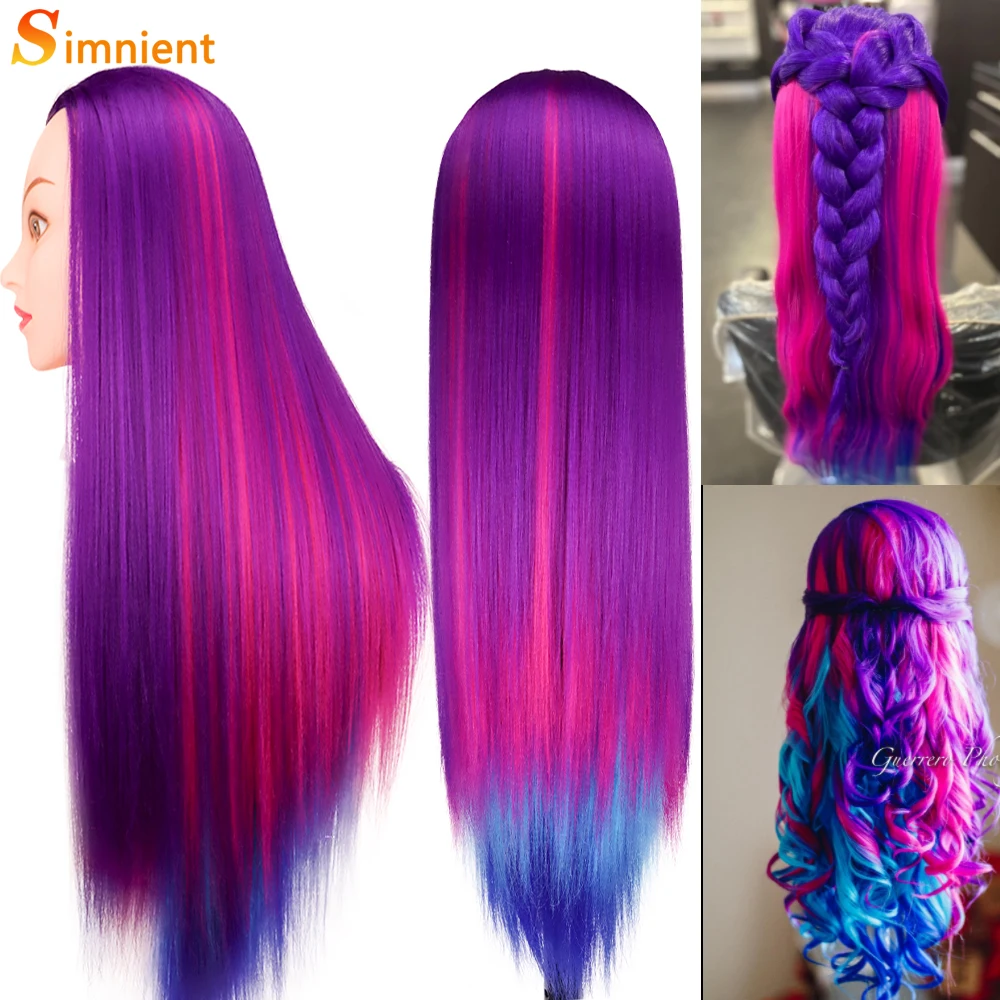 -Фиолетовые и ярко-розовые волосы-манекены, научитесь плетать красивые прически