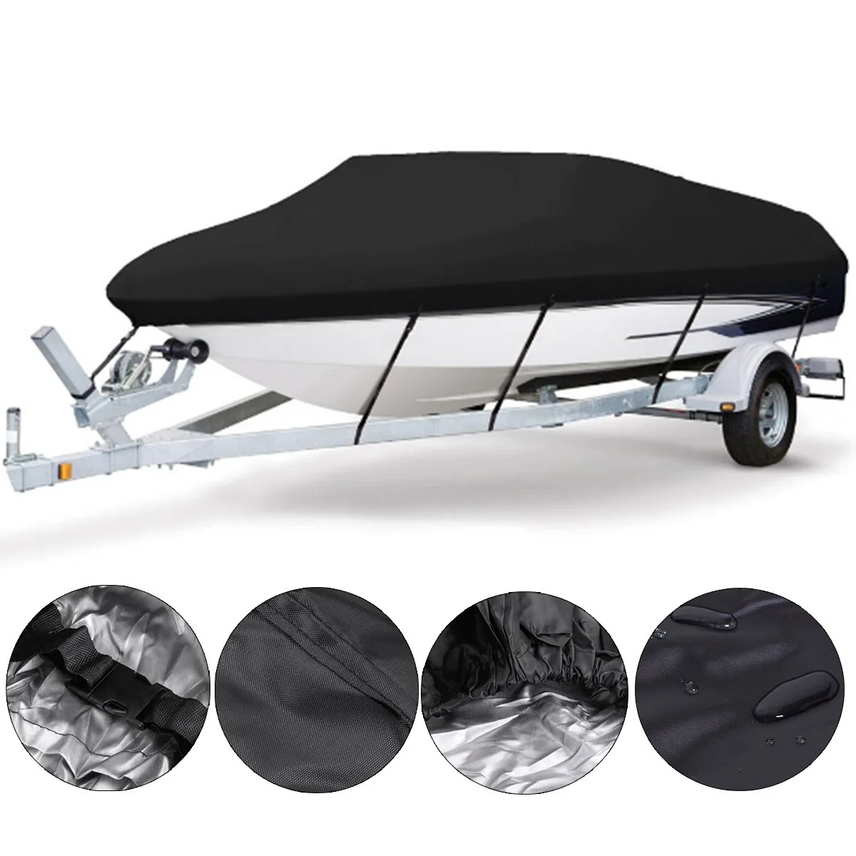 -Универсальная Посадка: в том числе V-hull, runrounds, fishing, SKI, speed, outboards, aluminum bass boats, lund boats и другие. Пожалуйста, измерьте размер вашей лодки перед покупкой чехла.