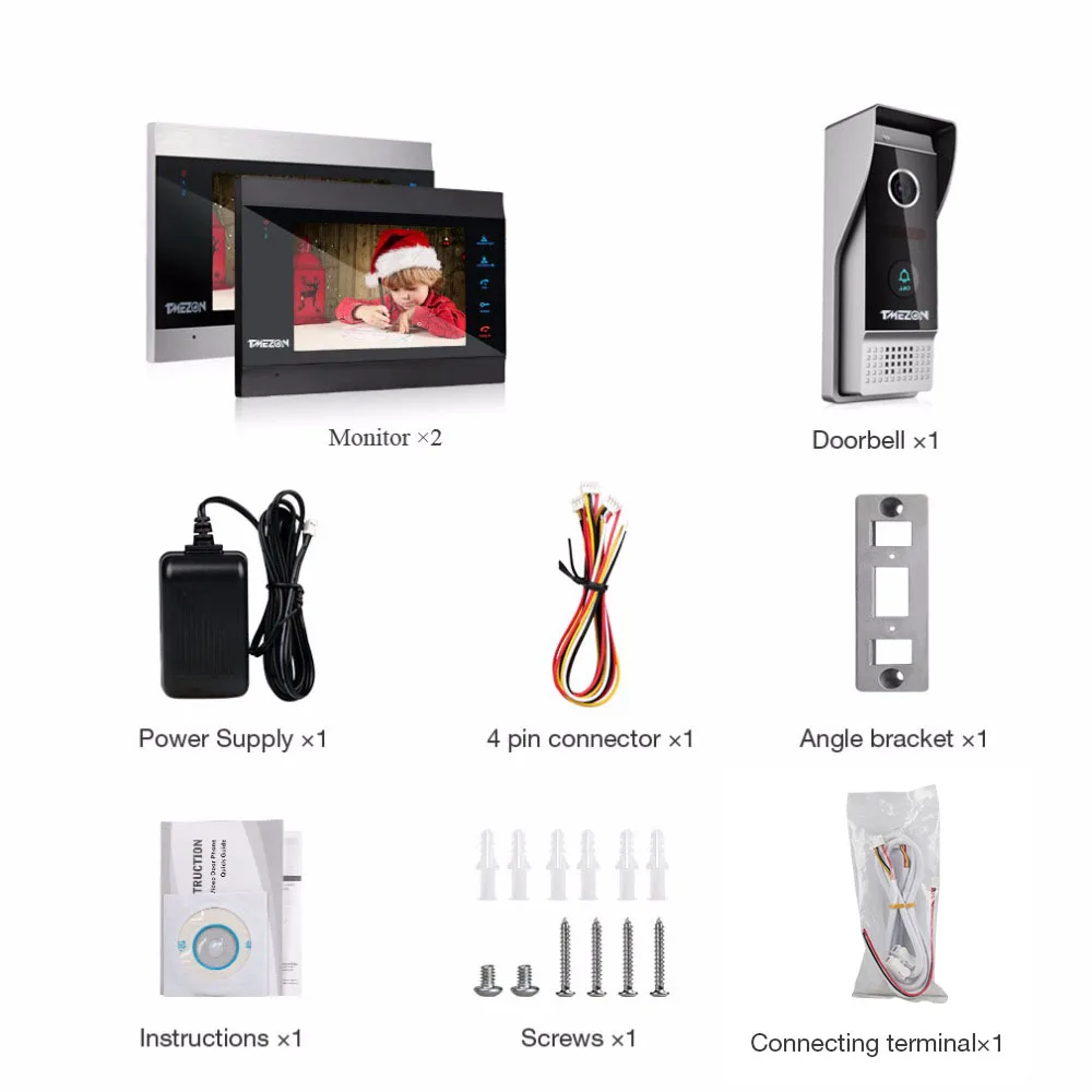 Умный IP-видеодомофон TUYA TMEZON, экран 7 дюймов, Wi-Fi, 1080p, 2 монитора + 1 Водонепроницаемая камера