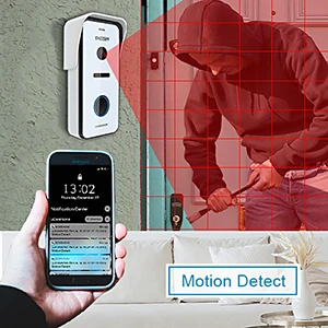 При нажатии на дверной звонок или при обнаружении движения камера дверного звонка автоматически записывает видео или снимки и сохраняет их на дополнительной Micro SD-карте для защиты вашего дома каждый день. (Sd-карта должна быть приобретена отдельно)