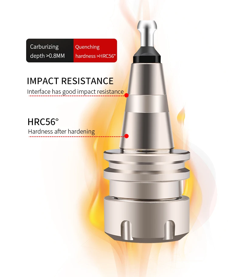 Heat treatment: advanced vacuum quenching furnace, can realize carbonitriding, increase the hardness of the tool holder, and the interface is more resistant to fatigue