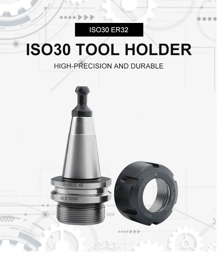 Tool name: ISO30 tool holder Coaxiality: <0.003mm Material: 20CrMnTi Hardness: >HRC56° Applicable equipment: cutting machine, processing center Carving machine, engraving machine