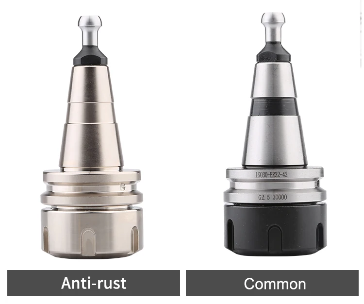 specification: Dynamic balance setting: 30000 rpm Nut specification: ER32 Runout accuracy: <0.002mm Coaxiality: <0.003mm Material: 20CrMnTi Hardness: >HRC56° Taper: 7:64 Anti-rust coating: electroplating anti-rust coating Processing hardness: hardened by quenching Excellent processing and fine production. Suitable for cutting machines, machining centers, engraving machines, and engraving machines.