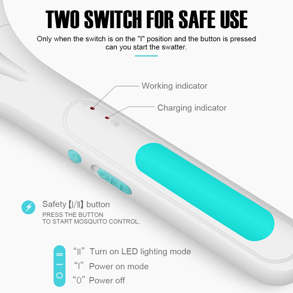* 4. Два переключателя обеспечивают двойную безопасность. Только когда переключатель находится в положении «I» и кнопка нажата, вы можете запустить мухобойку.