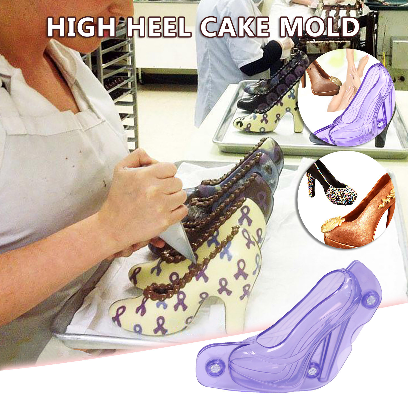 Женская фиолетовая 3D форма для шоколада с тяжелой подошвой, высокий каблук, многоразовые, Изделия для выпечки, помадка в форме торта, Хрустальная форма