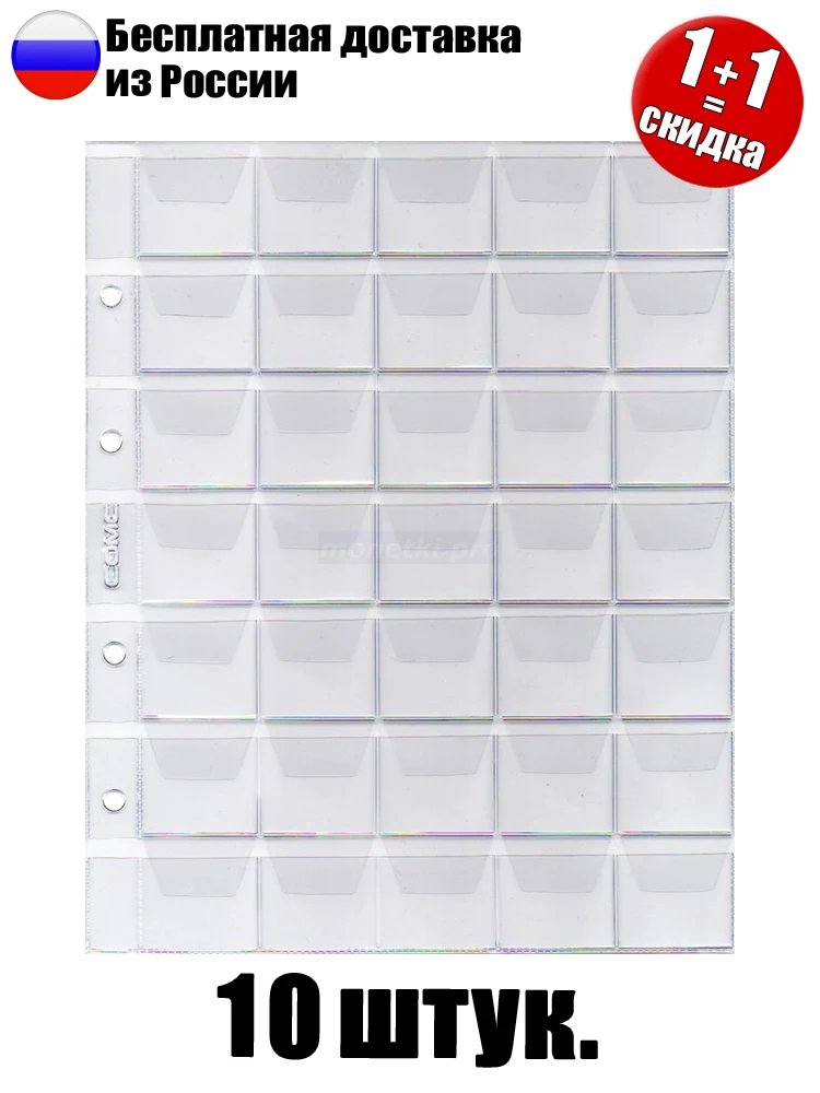 10 pieces! Sheets for coins for 35 cells, suitable for folders fomat "Optima", mesh size 32x33mm. Series "standard"