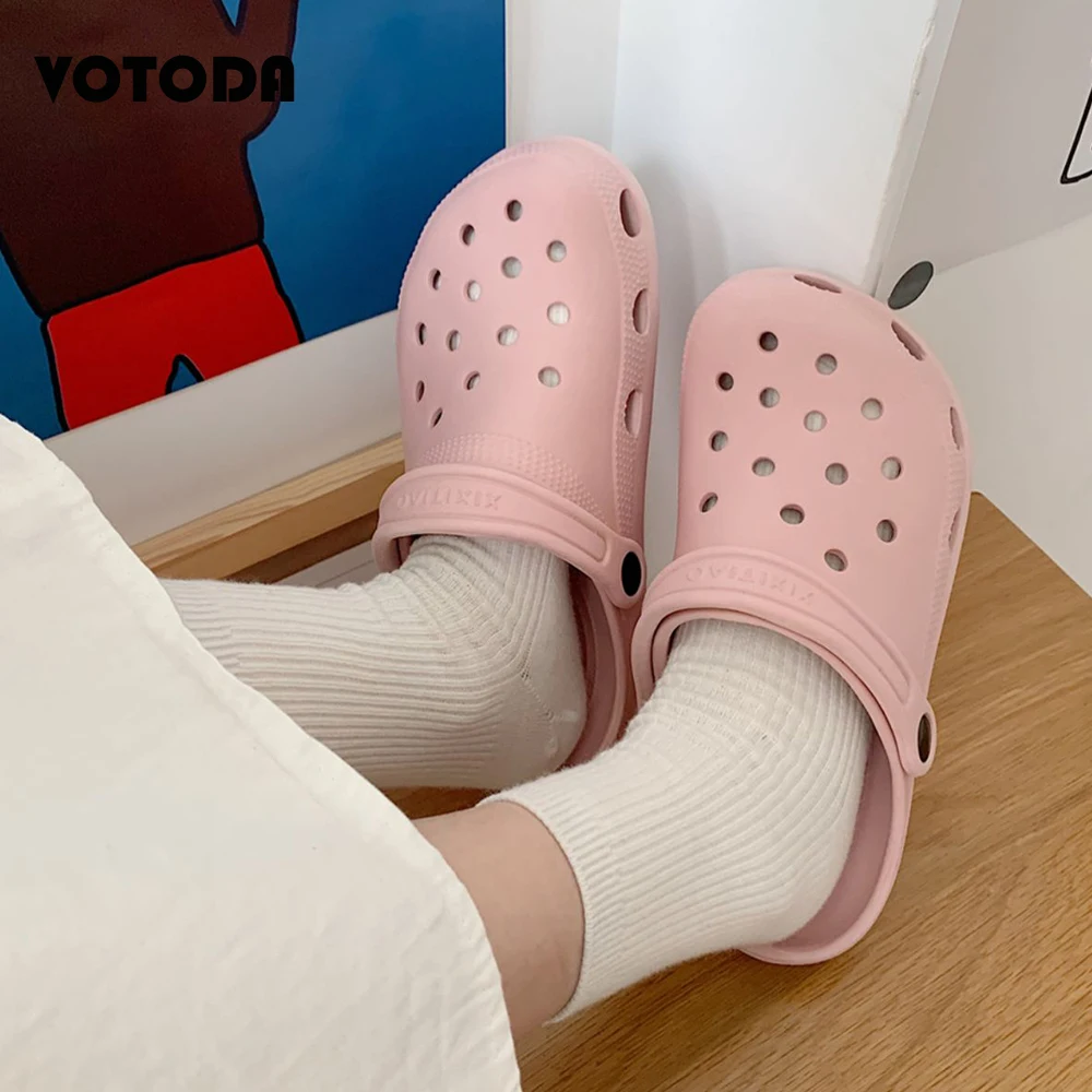 2021 г., женские сандалии повседневные летние пляжные удобные розовые открытые шлепанцы без шнуровки, лоферы с отверстиями, садовые сандалии Женская садовая обувь, Новинка