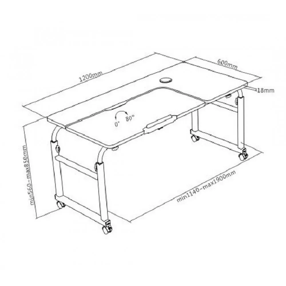 Overbed Desk - Регулируемый по высоте и ширине стол для мобильного компьютера (600 x 1200 мм)