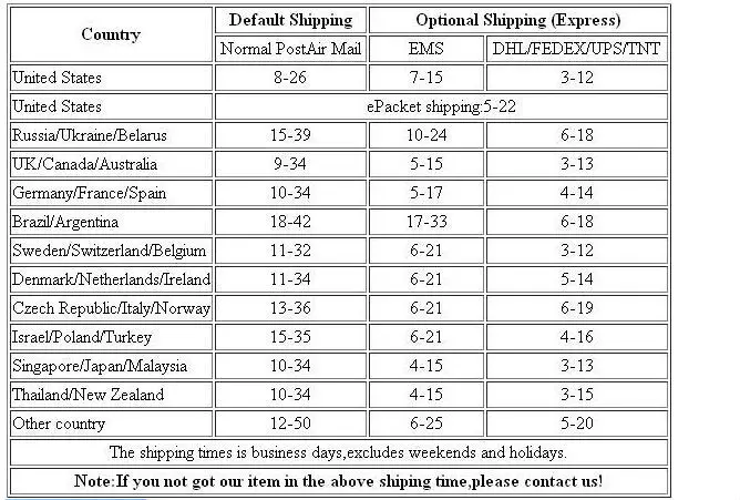 Примечание: авиа-отправление Почты Китая/посылка просто относится к мировой почтовой системе, которая намного медленнее, чем специальная доставка.
