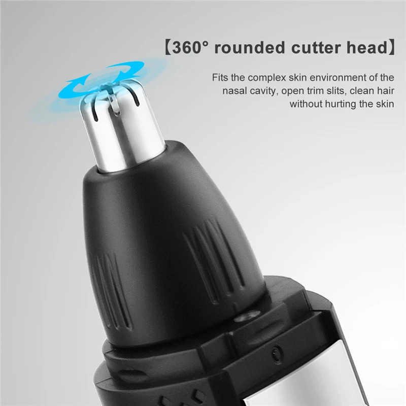 4. Изогнутое лезвие на 360 ° изготовлено из цельного материала из нержавеющей стали подходит для сложных кожных условий носовой полости. Открытые отделочные разрезы могут эффективно удалять волоски носа различных сторон и длины чисто.