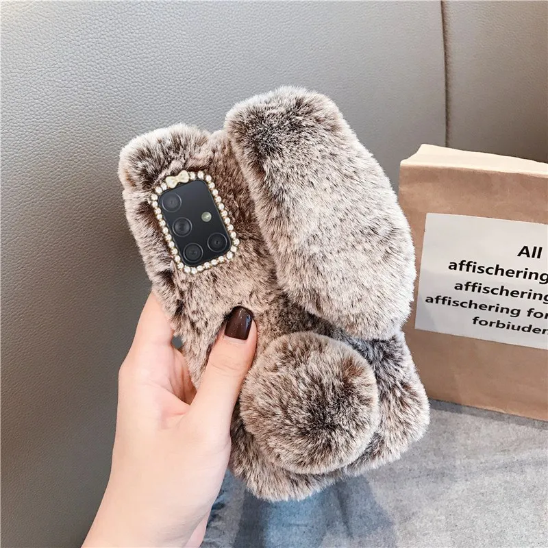 Теплый чехол с кроличьим пухом для Samsung Galaxy S7 S6 Edge S8 S9 S10 Plus S21 S20 FE A12 A6S J4 J6 J2 Prime J5 J7 Neo 2016, чехол для телефона, Теплый силиконовый чехол с кроличьим пухом, чехол Etui чехол