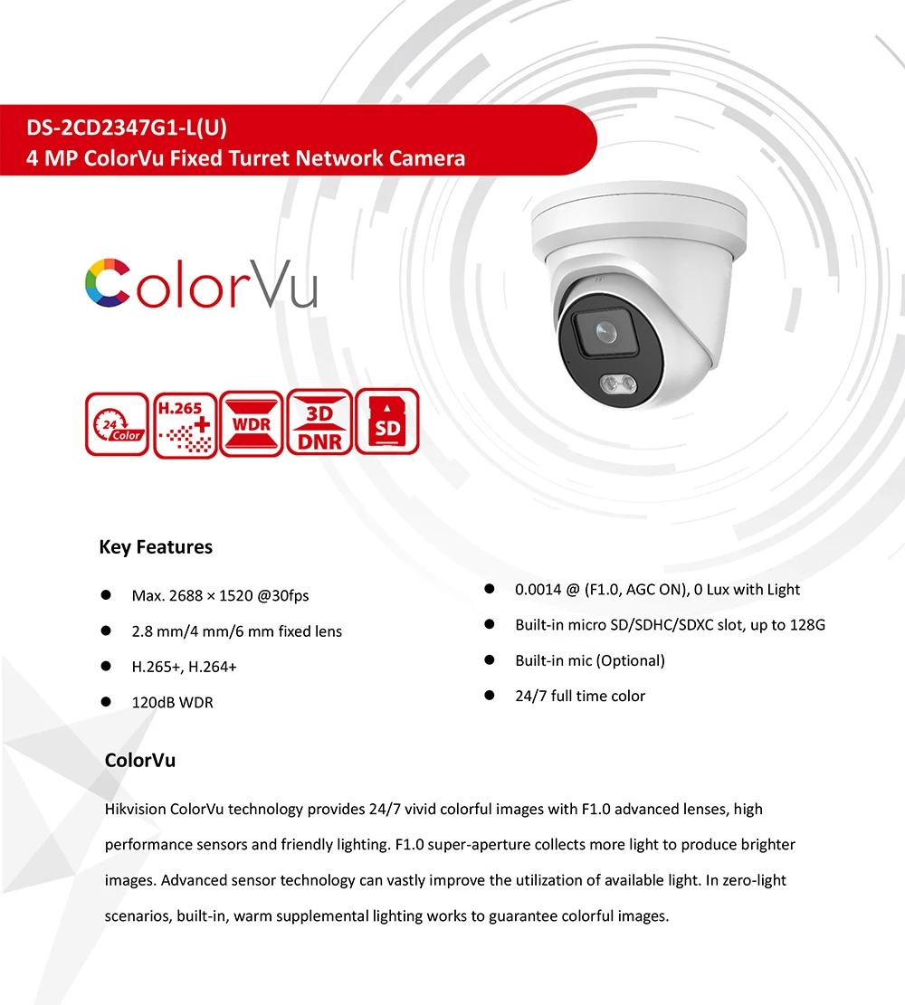 Hikvision ColorVu IP камера безопасности DS-2CD2347G1-LU заменить DS-2CD2343G0-I 4MP сетевая пуля PoE H.265 + WDR CCTV SD слот для карты