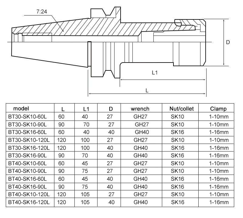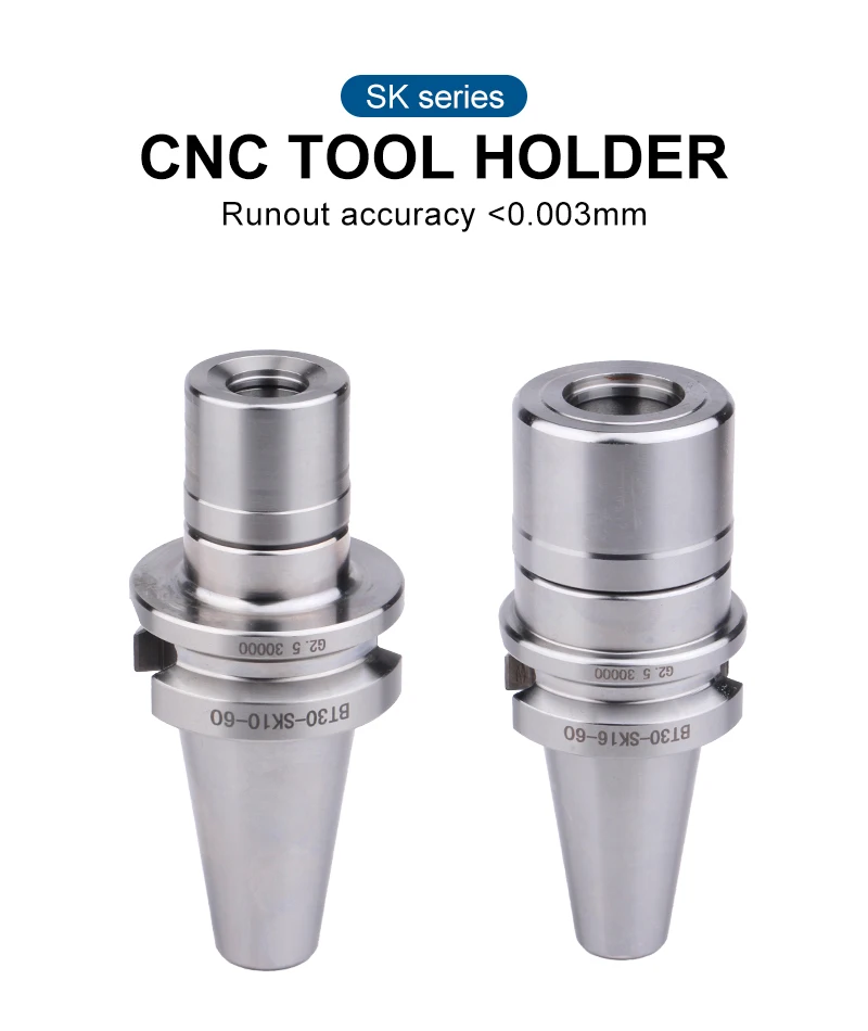Высокоскоростные держатели инструментов SK полностью проверены и имеют яркий внешний вид. Тонкое мастерство, один зажим, один литье внутри и снаружи, высокая концентричность; Круглая гайка не имеет сопротивления ветра и подходит для высокоскоростной работы, оснащена динамическим балансом пробивки, И подходит для станков с ЧПУ обрабатывающий центр ниже 30000 скорость