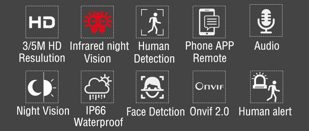 5. Mp/3.0MP изображение высокой четкости, супер инфракрасное ночное видение H265 + + видео