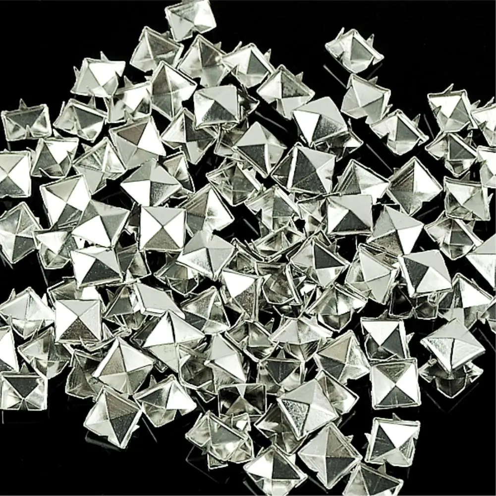 100 шт. DIY 10 мм серебряные 4 когтя заклепки квадратные металлические шипы заклепки Пирамида для кожи шипы на одежду/обувь/сумки/ремень