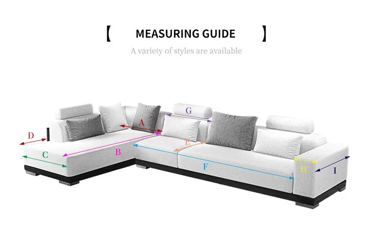 The method to choose the sofa cover 1. Backrest If G < 60cm , you can choose 70x70cm If 60cm < G < 75cm , you can choose 90x90cm 2. Armrest Please choose armrest according to the dimension I*K 3. Seat Cover Please choose E*(F+20~30cm) 1pc, B*(A+20~30cm) 1pc, C*(D+20~30cm) Please remove the sofa backrest before measurement!