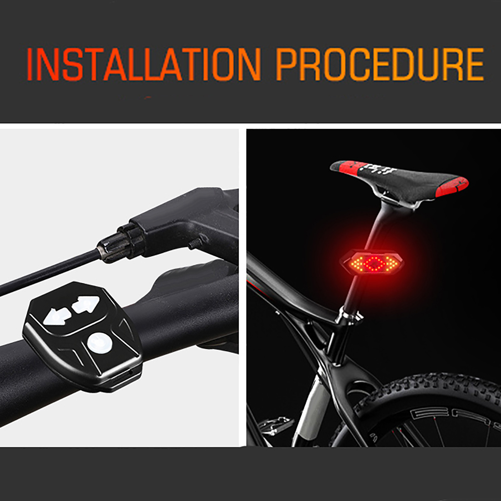 【Беспроводной пульт дистанционного управления-пульт дистанционного управления велосипедный задний светильник для отправки сигналов в различных режимах с помощью 3 простых в использовании кнопок на беспроводном контроллере. Дистанционное управление на руле, легко для велосипедиста управлять во время езды. Подходит для горных, MTB и дорожных велосипедов.