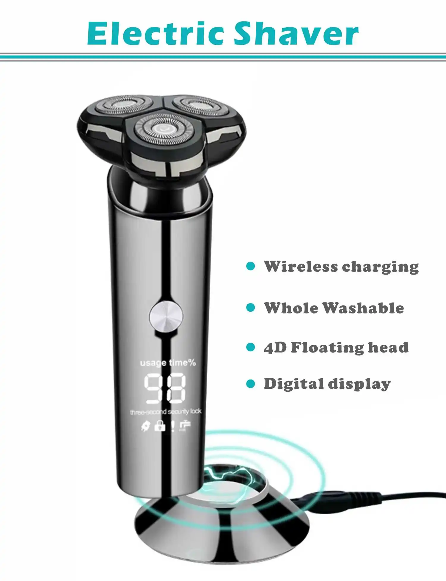 Беспроводная зарядка электробритва бритва Водонепроницаемая 4D головка сухой влажный светодиодный дисплей триммер для бороды моющаяся бритвенная машина для мужчин