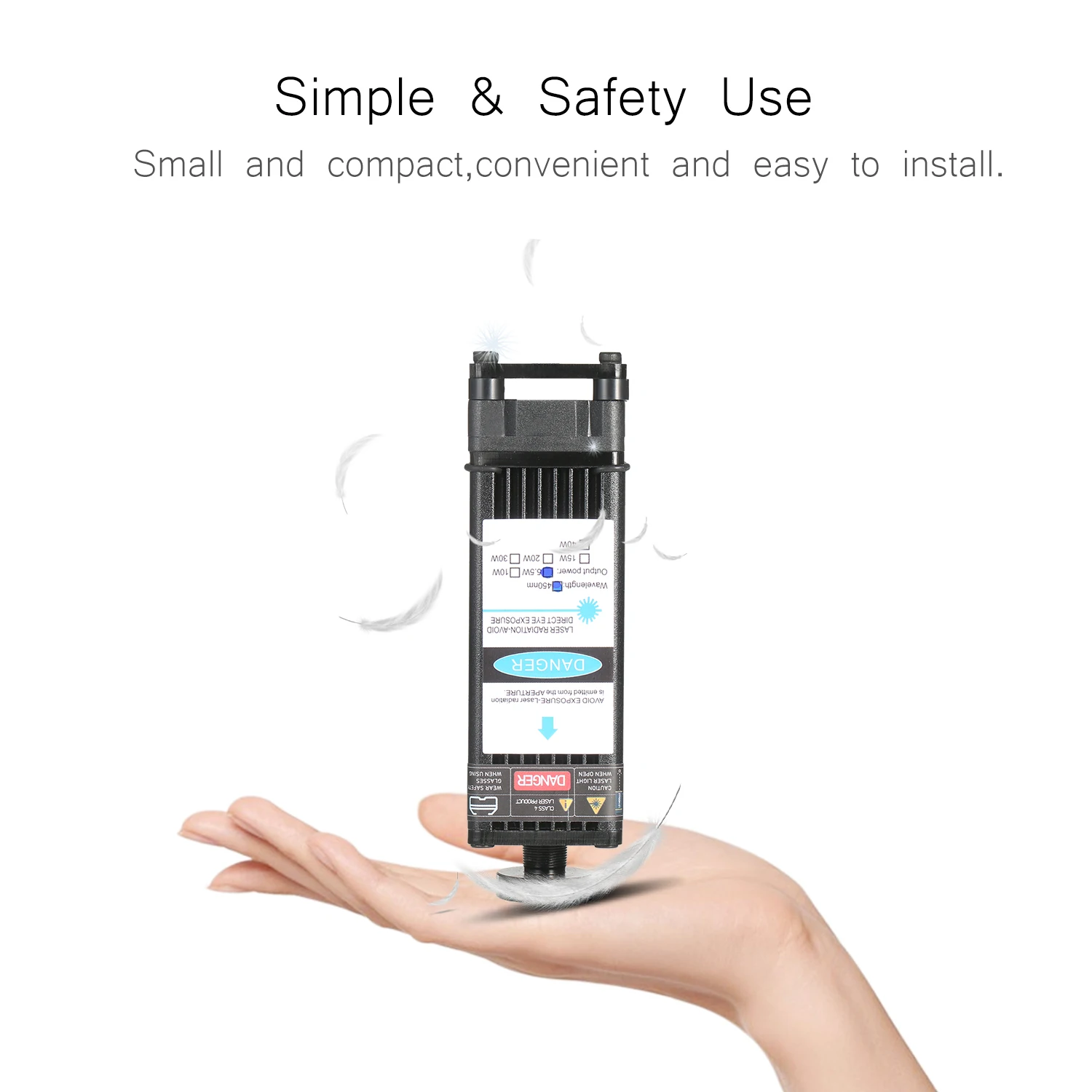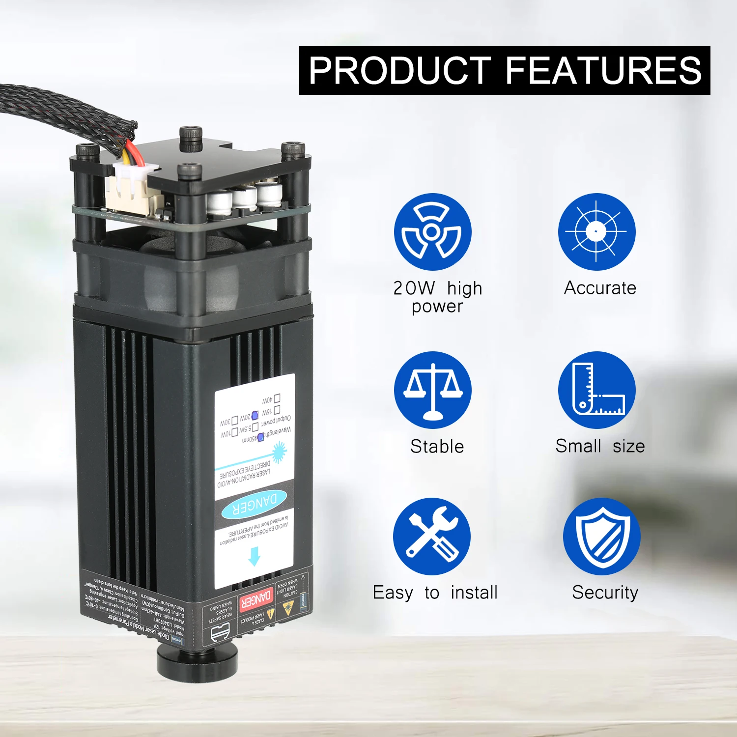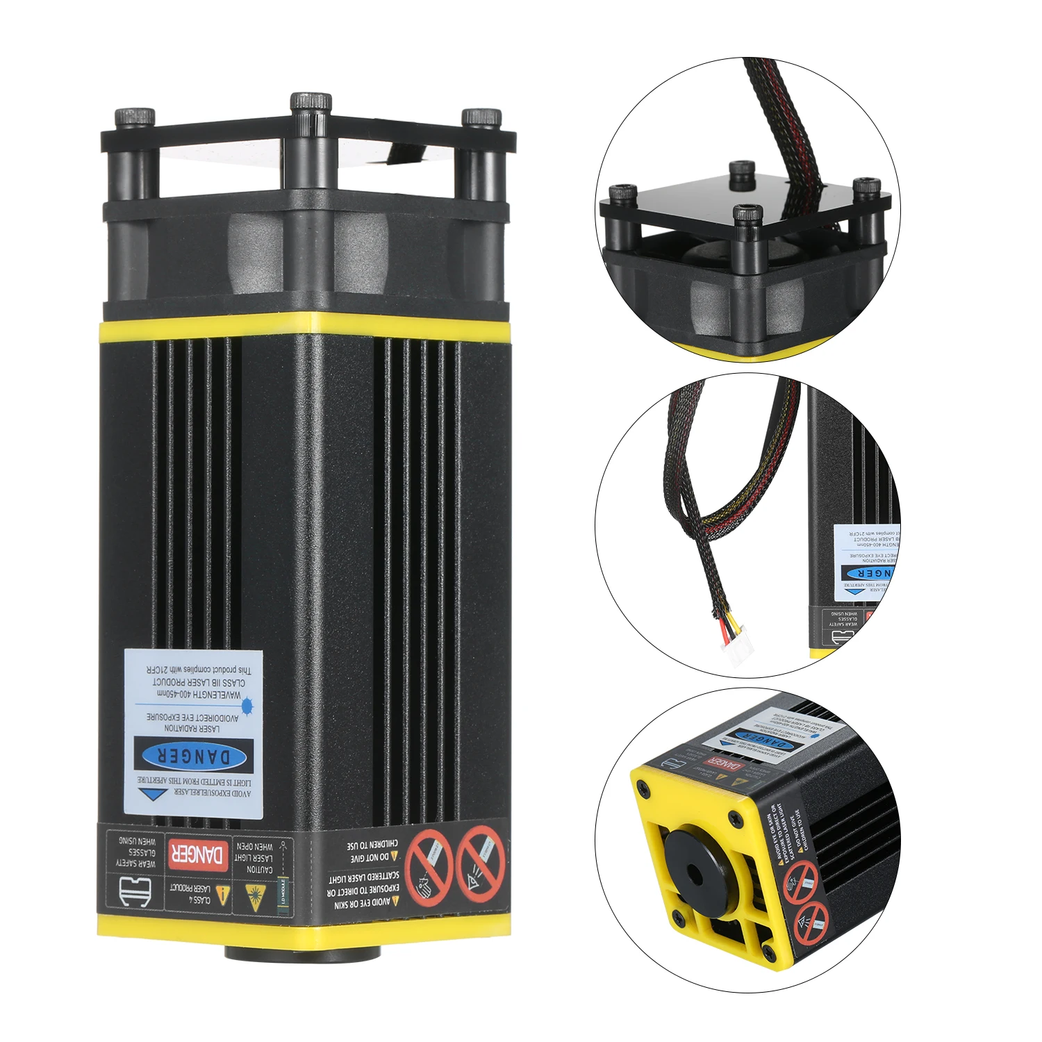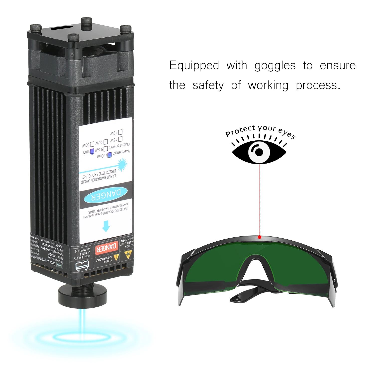 Усовершенствованный синий лазерный модуль -- усовершенствованный профессиональный лазерный модуль с более низкой потерей и высокой точностью, сохраняя при этом высокую скорость, высокую стабильность и длительный срок службы. Ярко-синего цвета с защитой от УФ-светильник, пятно света без постороннего светильник, отлично подходит для размещения в тех случаях, когда гравировка.