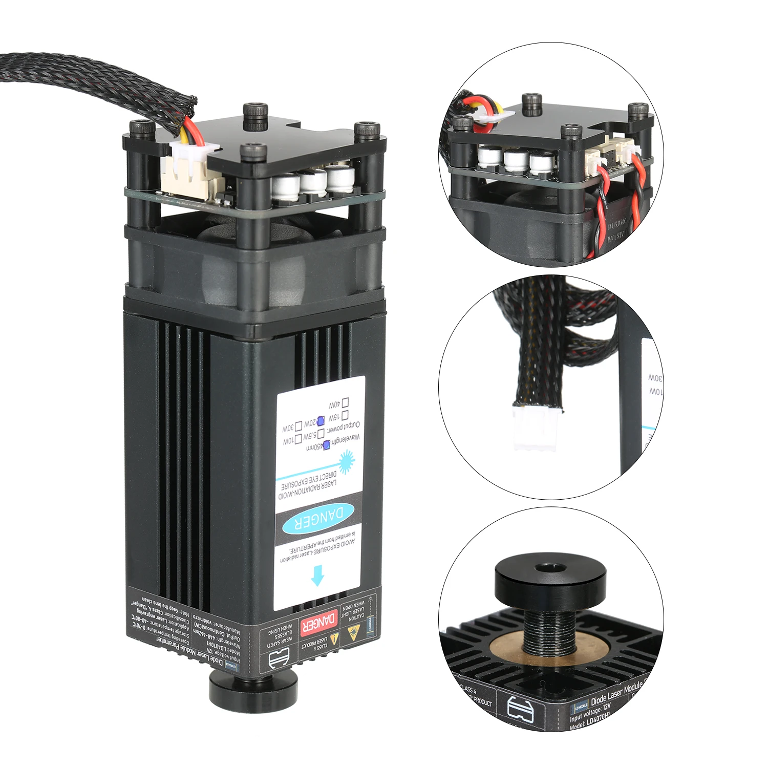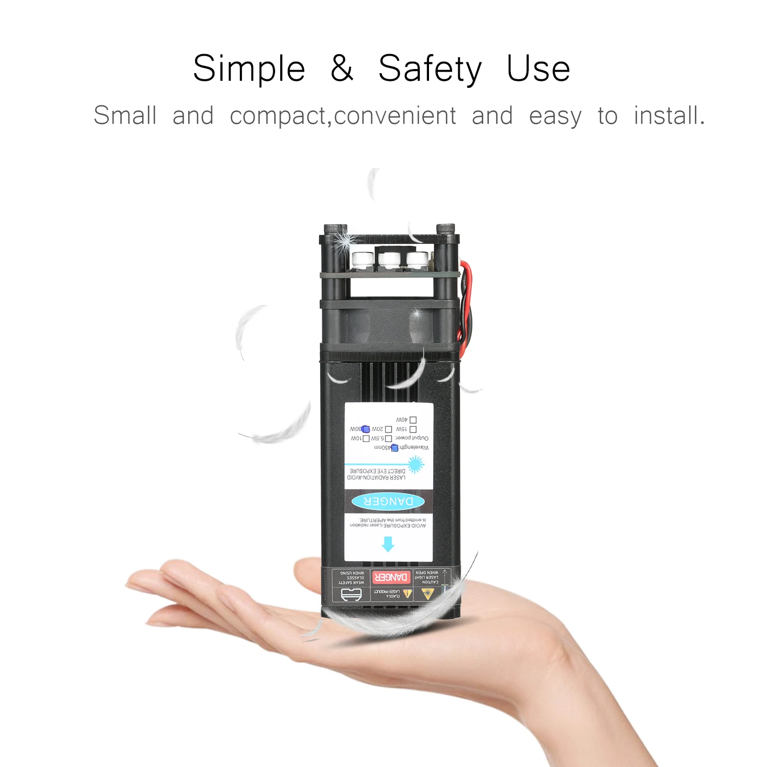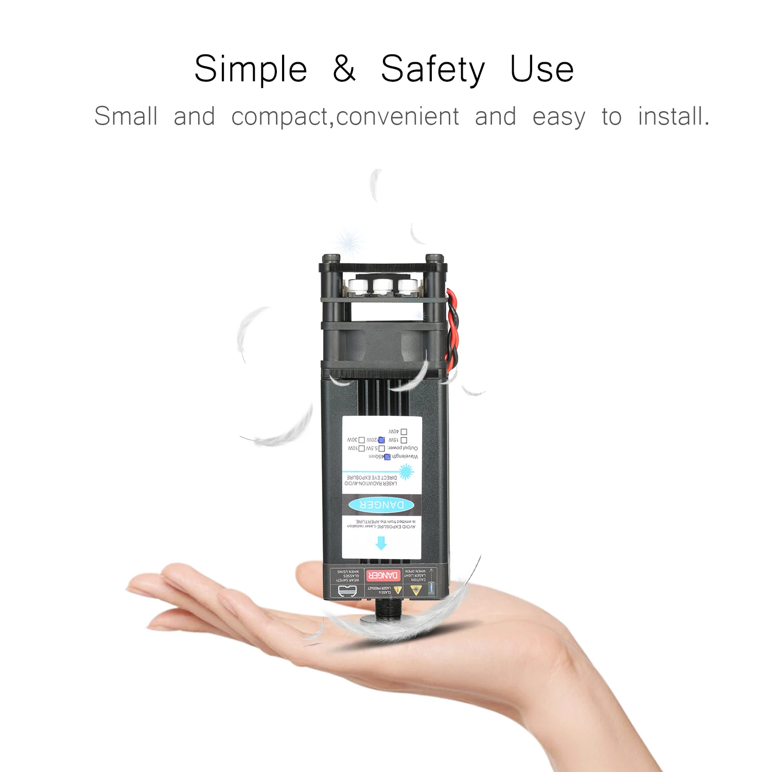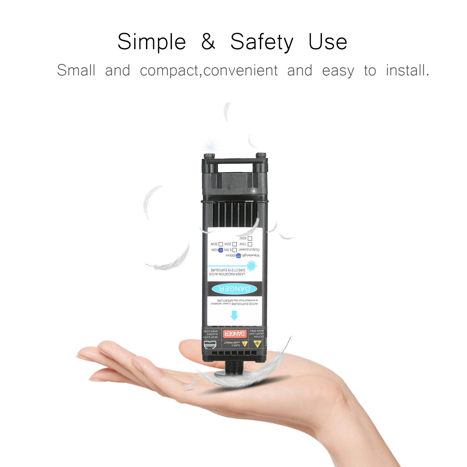Усовершенствованный синий лазерный модуль -- усовершенствованный профессиональный лазерный модуль с более низкой потерей и высокой точностью, сохраняя при этом высокую скорость, высокую стабильность и длительный срок службы. Ярко-синего цвета с защитой от УФ-светильник, пятно света без постороннего светильник, отлично подходит для размещения в тех случаях, когда гравировка.