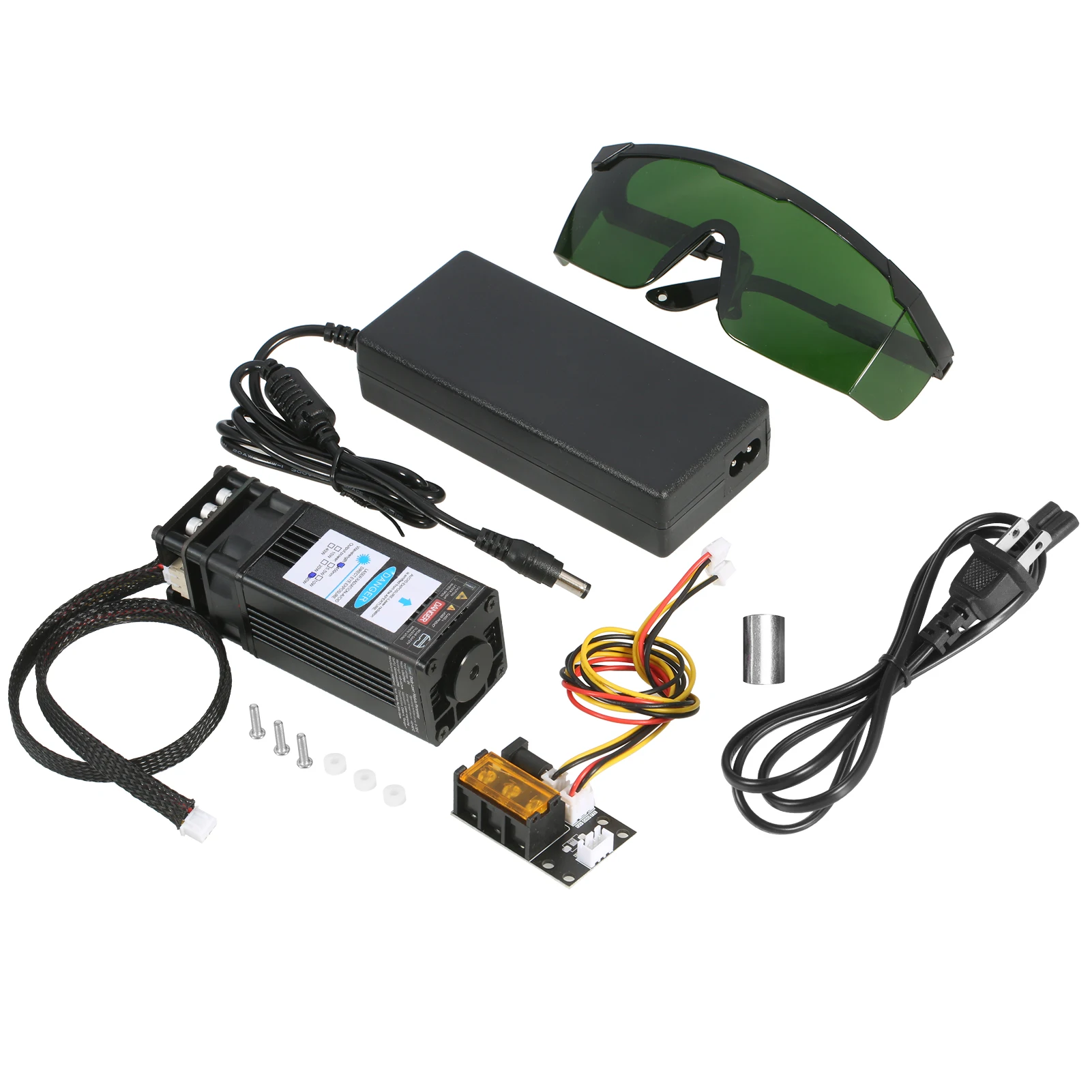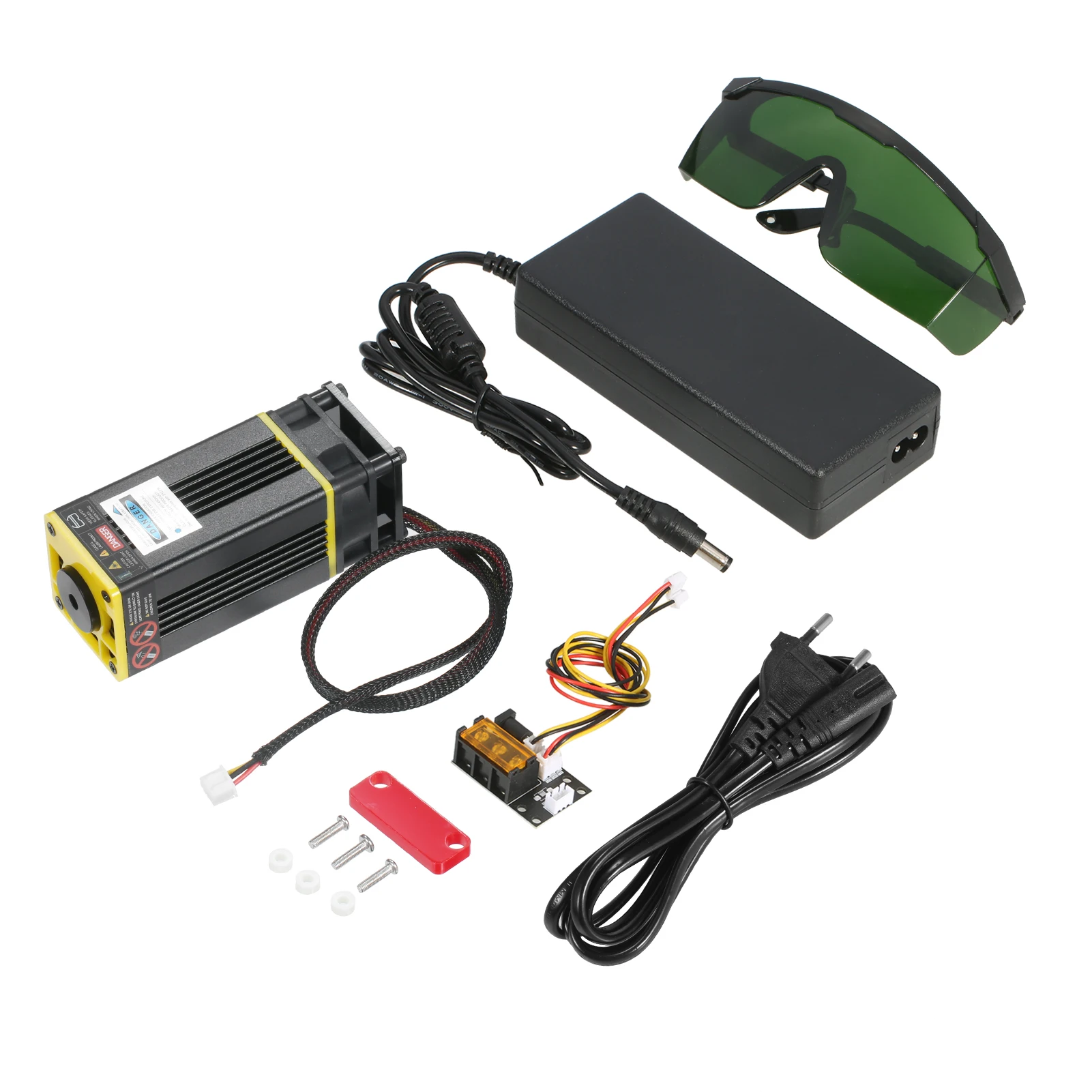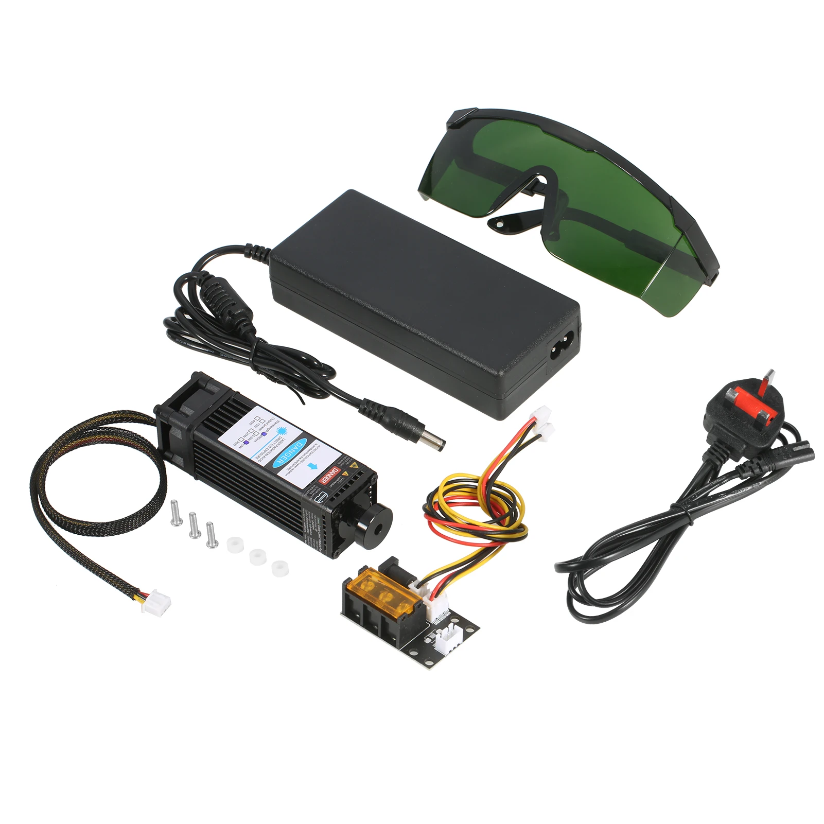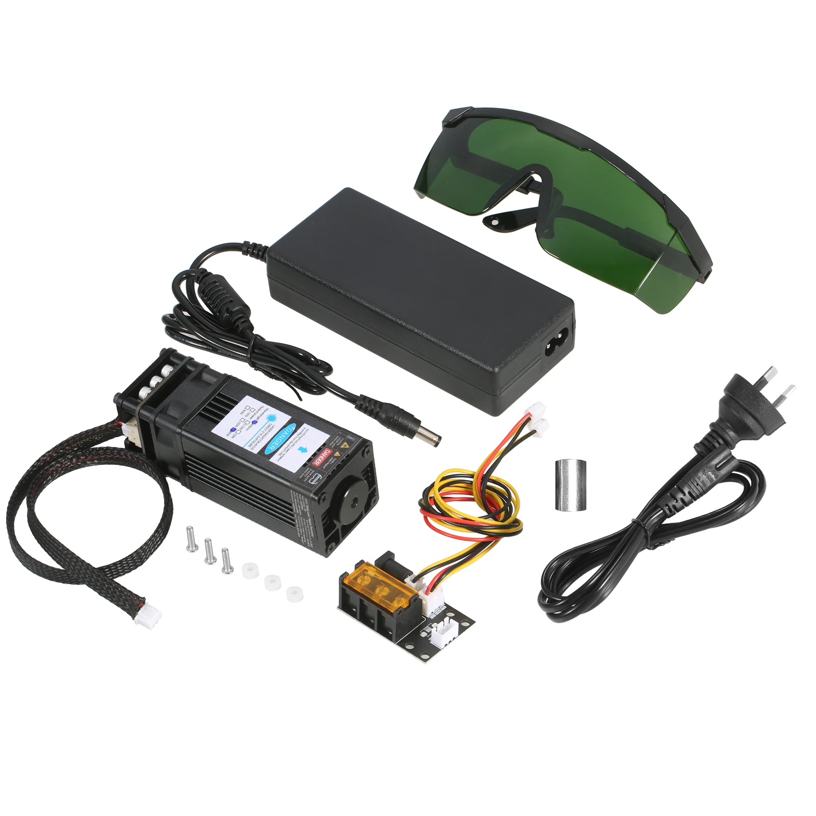Комплект лазерного модуля Universtal-посылка включает в себя лазерный модуль, 3 способа ввода платы адаптера, 2 Pin и 3 pin кабель, источник питания и шнур питания. Плата адаптера 3 интерфейса и 2 кабеля предназначены для лазерного гравера, 3D-принтера, станка с ЧПУ. Вы можете свободно использовать наш лазерный модуль в вариационной оправе.