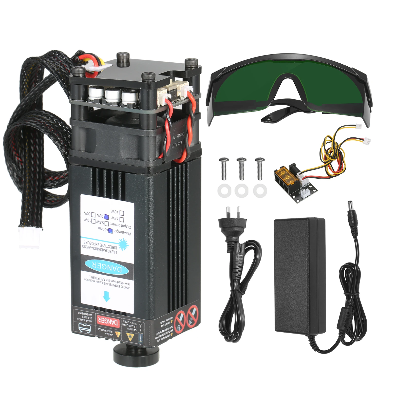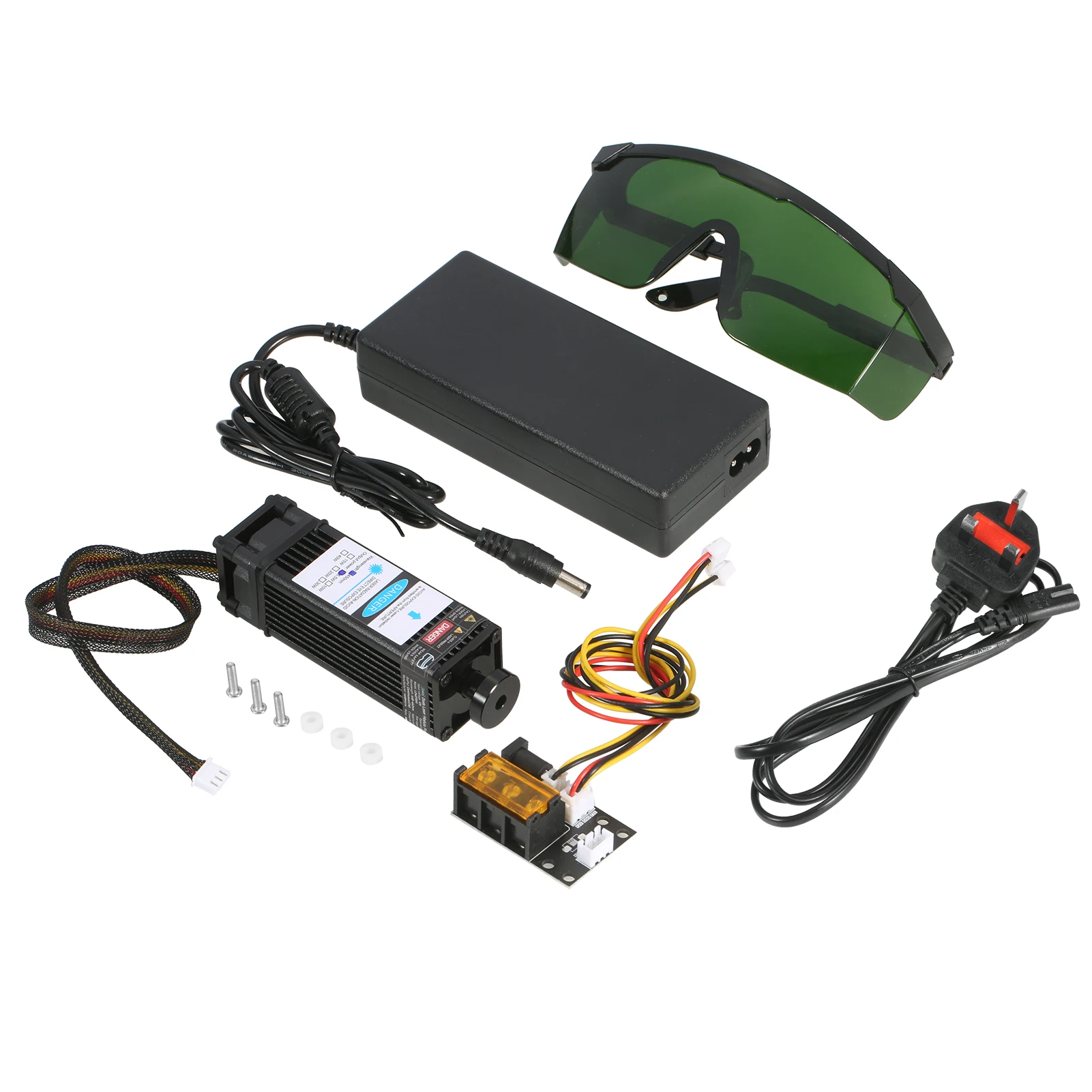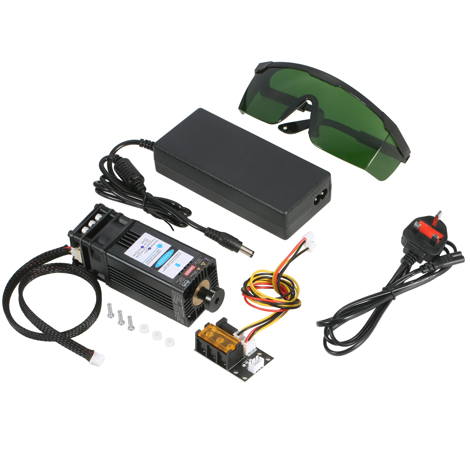 Комплект лазерного модуля Universtal-посылка включает в себя лазерный модуль, 3 способа ввода платы адаптера, 2 Pin и 3 pin кабель, источник питания и шнур питания. Плата адаптера 3 интерфейса и 2 кабеля предназначены для лазерного гравера, 3D-принтера, станка с ЧПУ. Вы можете свободно использовать наш лазерный модуль в вариационной оправе.