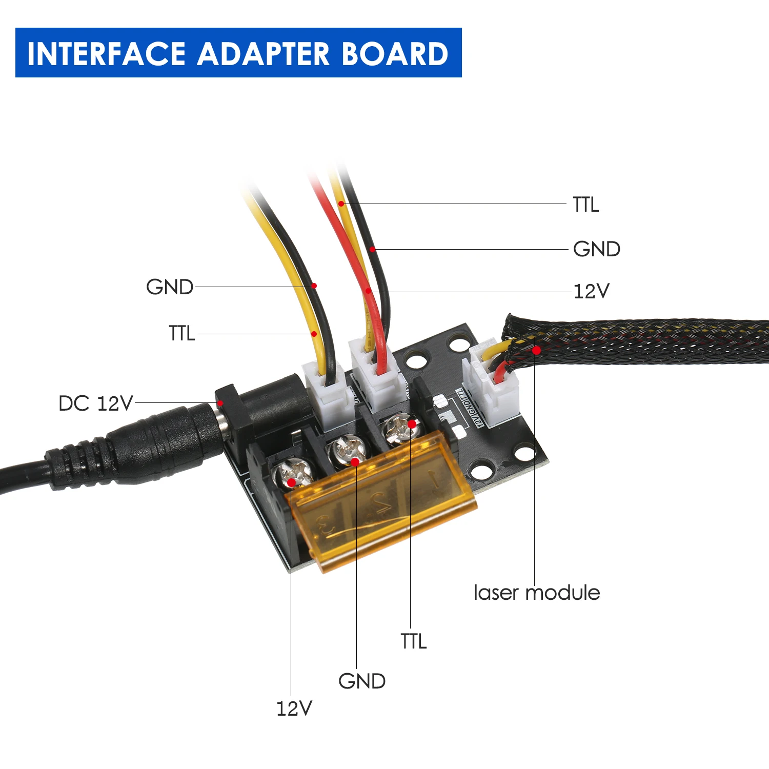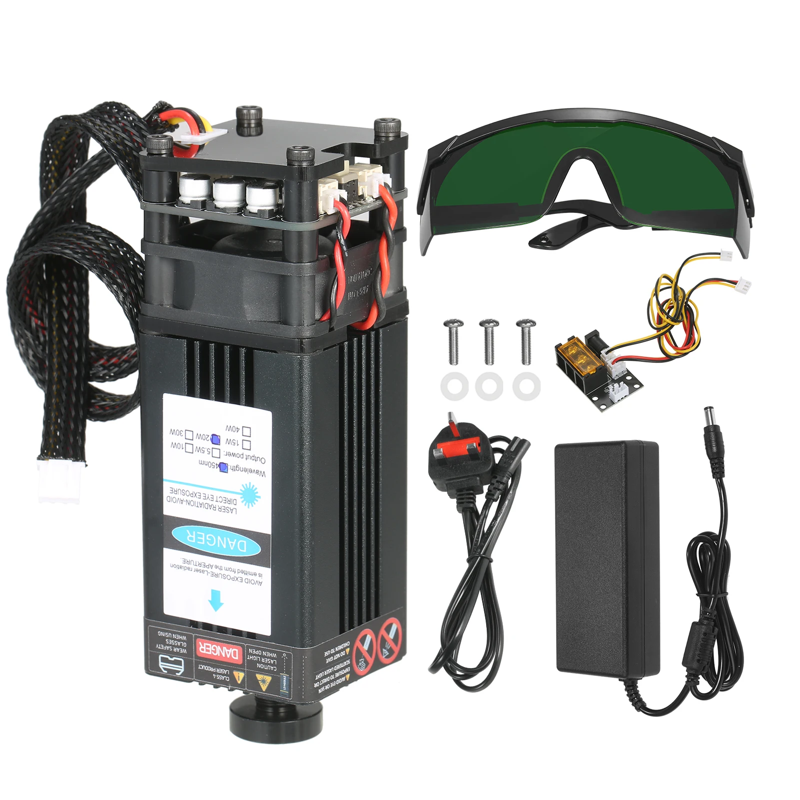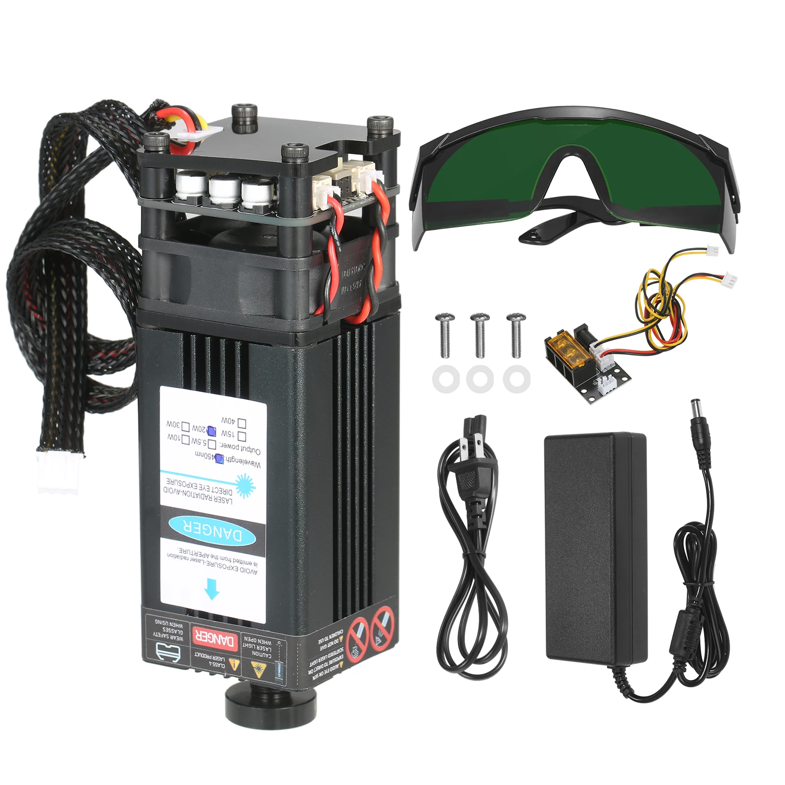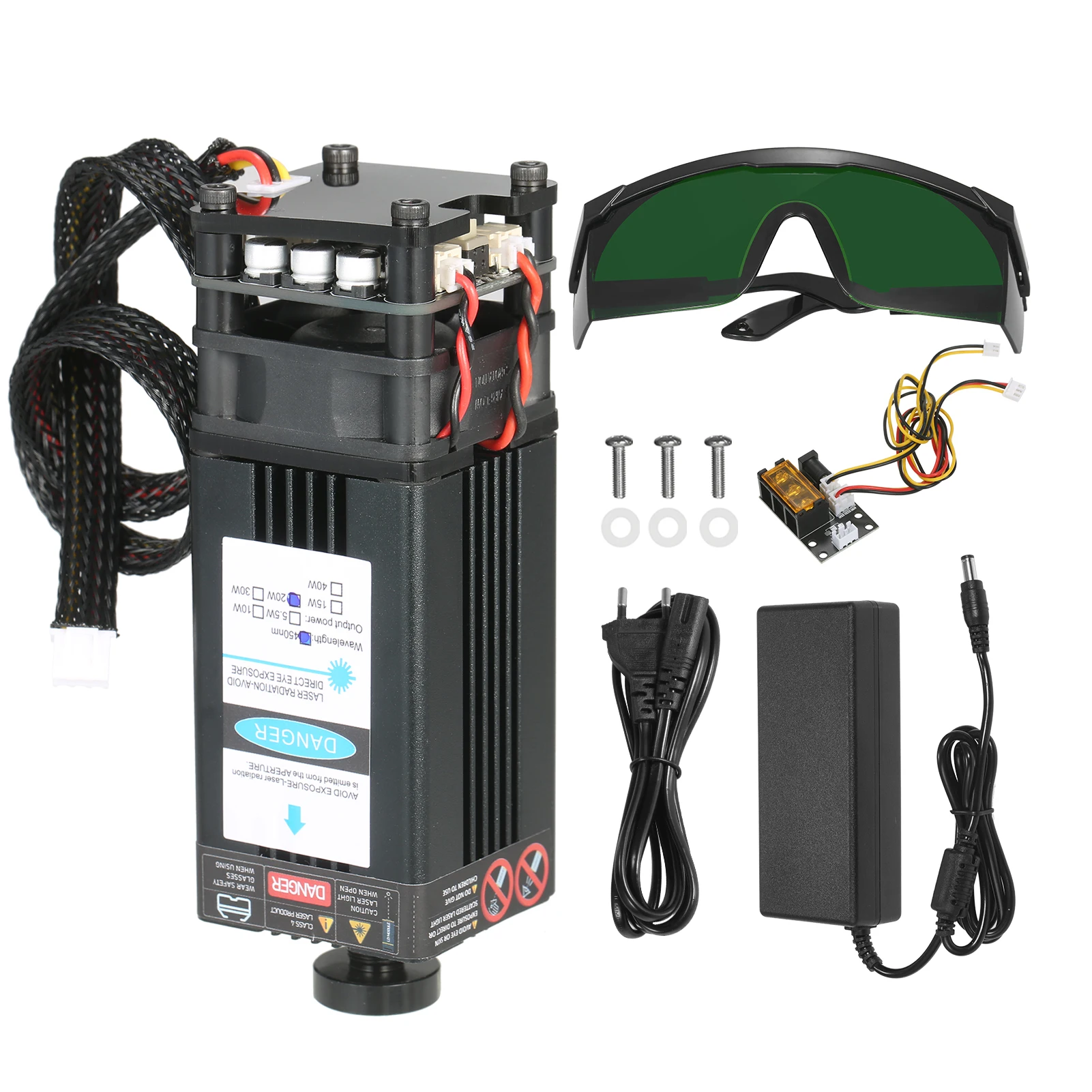 Комплект лазерного модуля Universtal-посылка включает в себя лазерный модуль, 3 способа ввода платы адаптера, 2 Pin и 3 pin кабель, источник питания и шнур питания. Плата адаптера 3 интерфейса и 2 кабеля предназначены для лазерного гравера, 3D-принтера, станка с ЧПУ. Вы можете свободно использовать наш лазерный модуль в вариационной оправе.