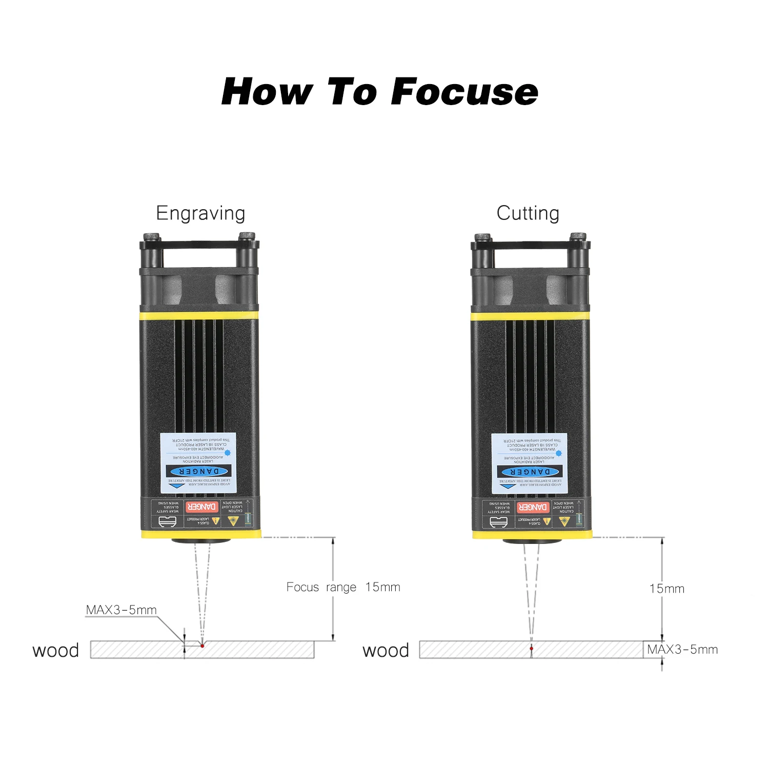 Фиксированный фокус-поставляется с вспомогательным фокусом Colume для выравнивания расстояния гравировки между лазерным модулем и объектами резьбы.