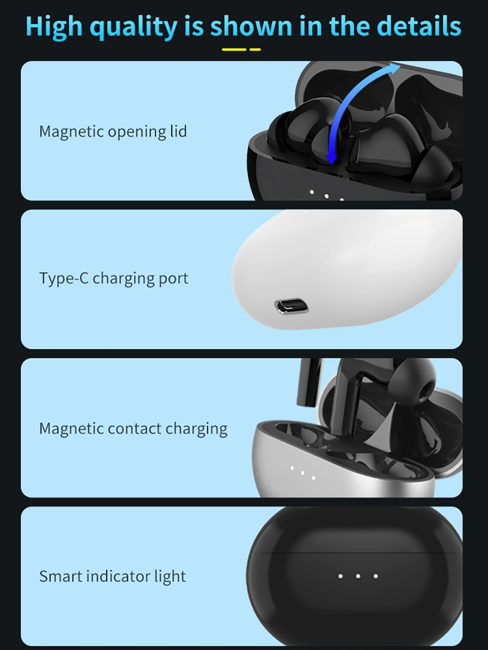 Зарядный отсек: очень большая емкость 280 мА · ч, может полностью заряжать гарнитуру 4-5 раз, 150 часов длительного времени в режиме ожидания, 20 часов длительного использования, полностью отвечает вашим ежедневным потребностям