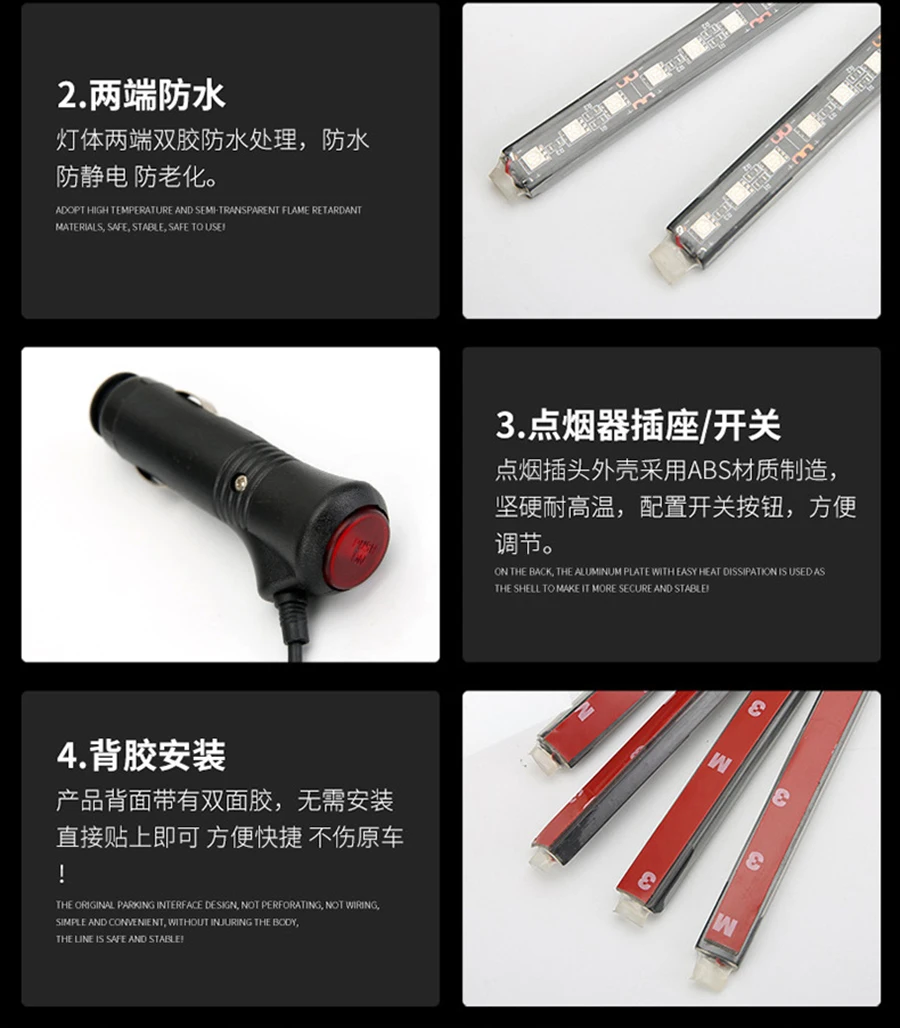 Особенности: Совершенно новый и высокое качество. Автомобильная лампа внутри создает очаровательную атмосферу для вас. 3 m наклейка на заднюю часть во всем мире, просты в установке, не нужно менять проводную цепь в вашем автомобиле. Применение: подходит для освещения всего автомобильного интерьера, просто подключи и работай. Характеристики: Материал: Поликарбонат Рабочее напряжение: DC12V Мощность: 5 Вт Светодиодный: 9x5050 SMD (каждая полоса) Количество полос: 2 Светильник: красный, белый, синий, Длина ремешка: 12 см Посылка включает в себя: 1 Набор светодиодных лент