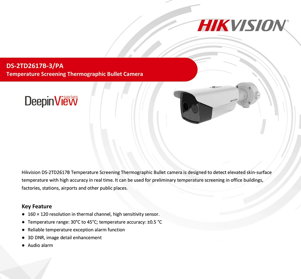 Hikvision Термографическая камера для измерения температуры тела DS-2TD2617B-3/PA Поддержка звуковой сигнализации