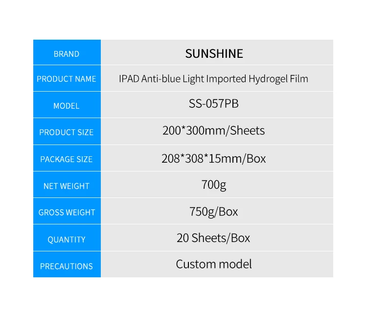 Примечание:SS-057PIPAD HDИмпортная Гибкая гидравлическая пленка (20 шт./кор.)SS-057PBIPADГибкая гидравлическая пленка с защитой от сисветильник (20 шт./кор.)ОсобенностиУниверсальный до и после пленки