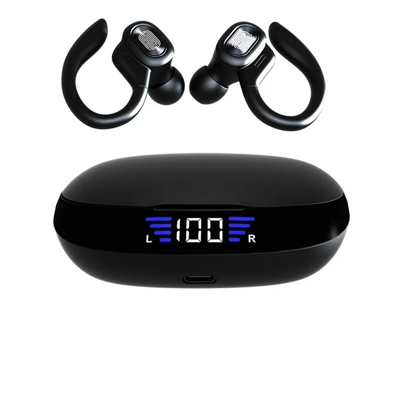 Model: V2S (with charging compartment, without power bank function) Bluetooth version: V5.0 + Real HIFI Surround Sound Support: battery display Support: music, call Headphone battery capacity: 40mAh Charging box battery capacity: 2600mAH /620mAh Headphone full: 1.5 hours Charging compartment full: 2 hours Talk time: 1-2 hours Music playback: 3-5 hours Charging time: 2 hours Headphone battery capacity: 40 mA Charging compartment battery capacity: 2600 mAh or 620 mAh Color: black, red (the earphones are all black, but the color of the charging compartment is different) Features: Type: Sports headphones Function 1: New Bluetooth 5.0 headset Function 2: Touch-control music headphones Function 3: Smart noise-cancelling headphones Function 4: Earphone with LED power display Function 5: Real wireless Bluetooth headset, can be used alone or stereo Function 6: Can be used as a mobile power supply to charge mobile phones Headphone capacity: 40mAh Charging compartment capacity: 2600mAh(Can charge for phone as power bank) Packing List (Send free gift) Wireless Headphone *2 Charging Box * 1 Charging Cable * 1 Ear cap * 2 Manual * 1